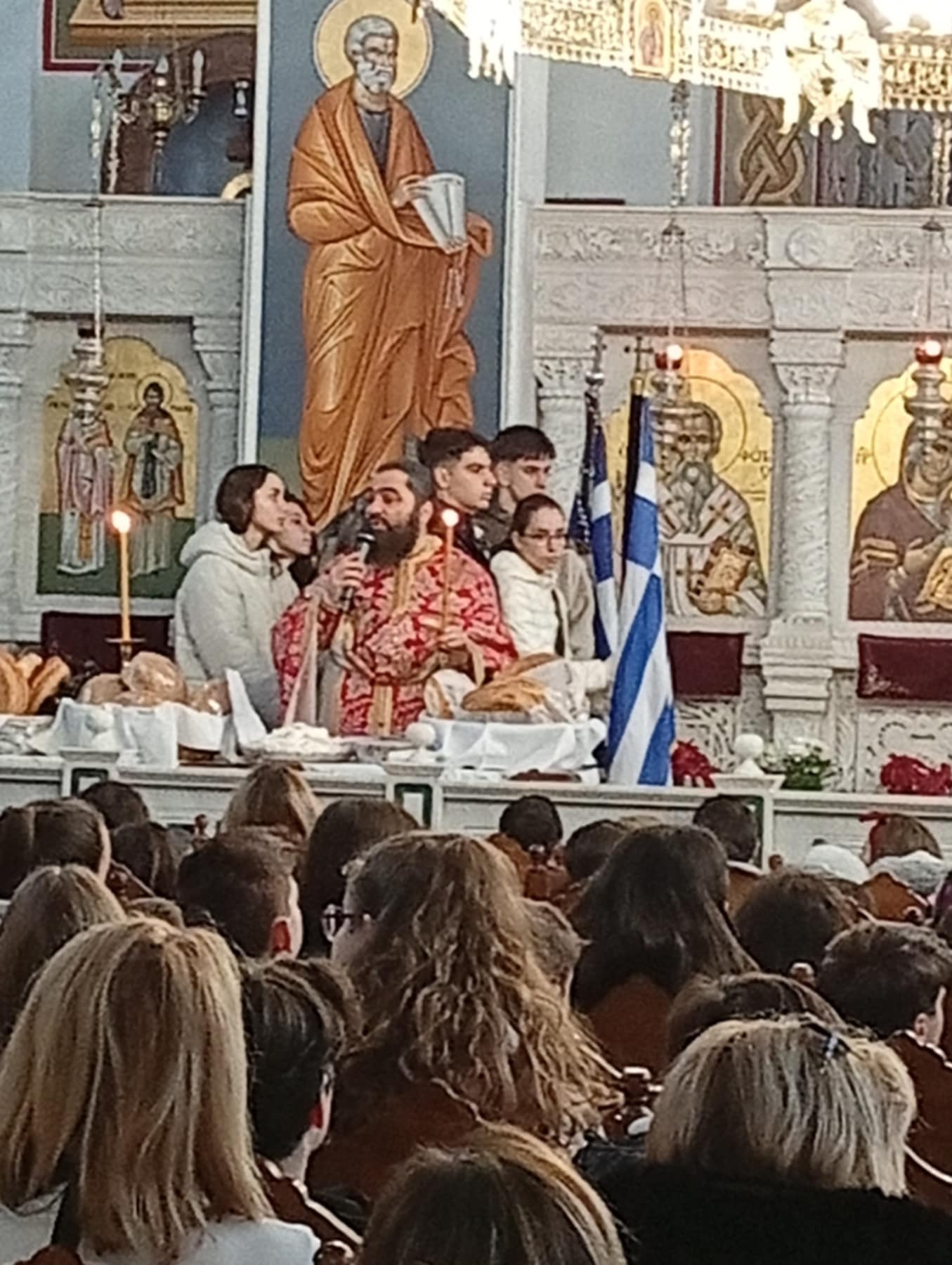 Στο πλαίσιο αυτό, οι μαθητές και μαθήτριες των Σχολείων της Ενορίας μας συμμετείχαν στην Θεία Λειτουργία, την ημέρα της εορτής τους, Παρασκευή 30 Ιανουαρίου, ως ένδειξη τιμής προς τους Τρεις Ιεράρχες και ως ευκαιρία πνευματικού προβληματισμού.