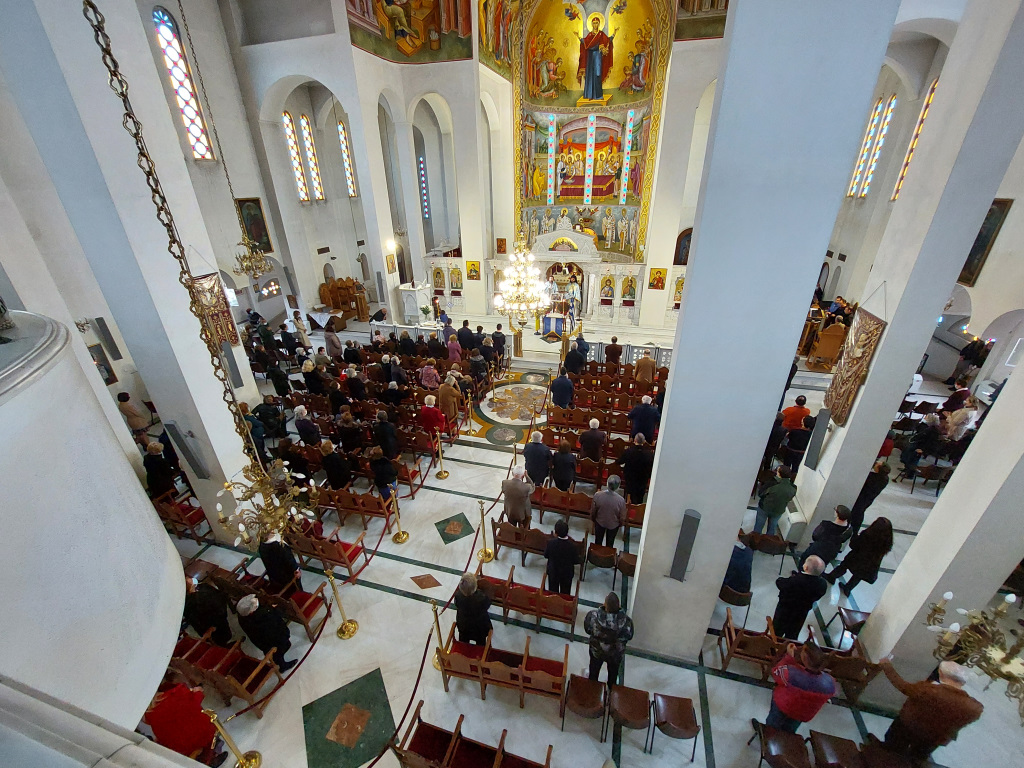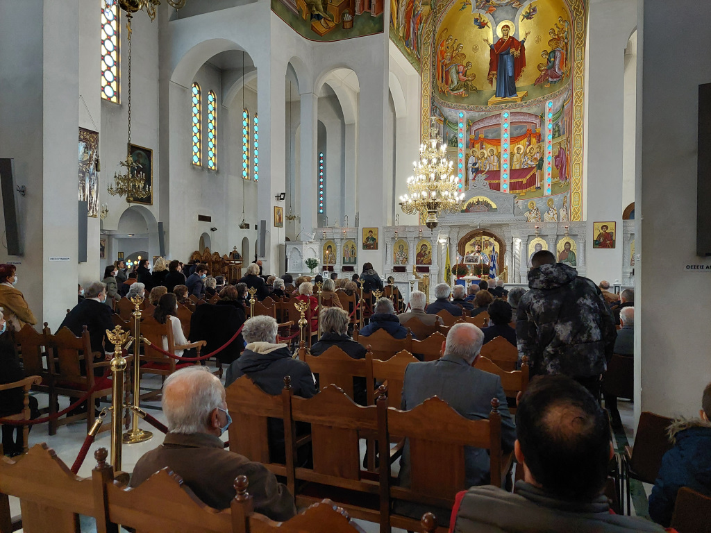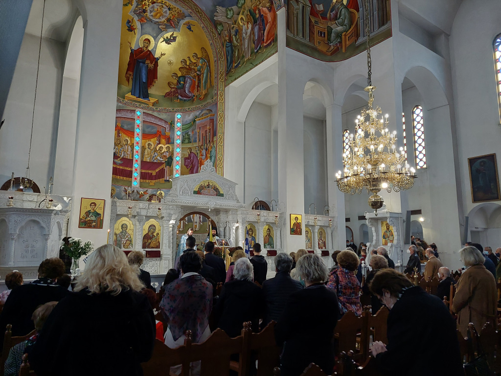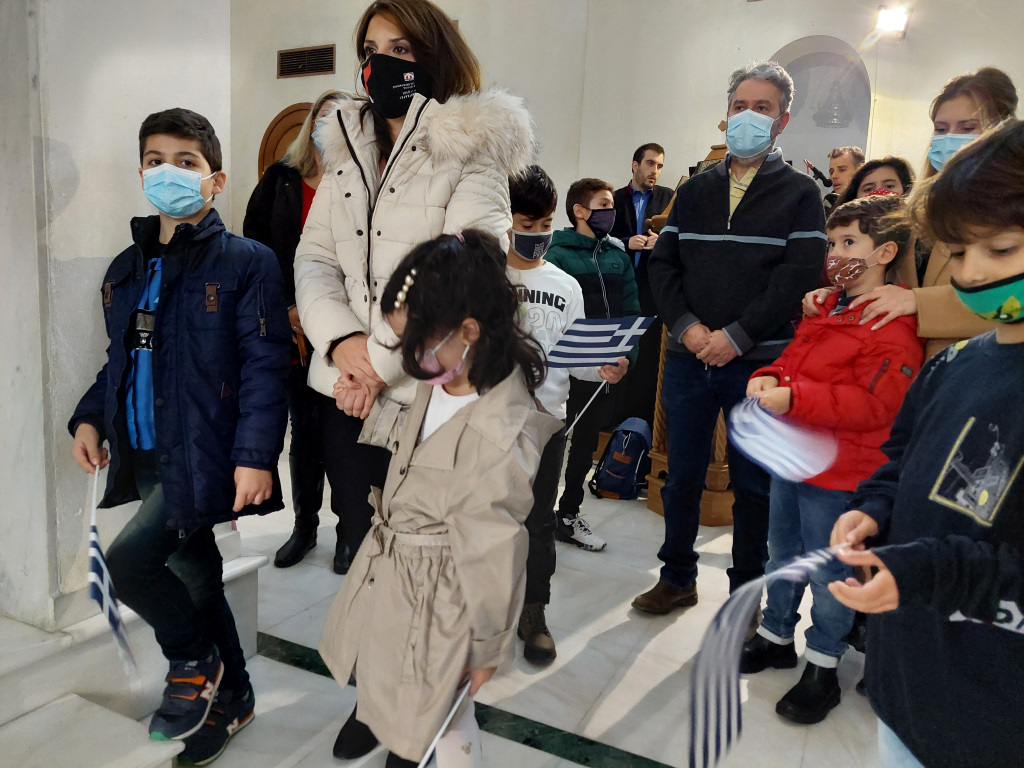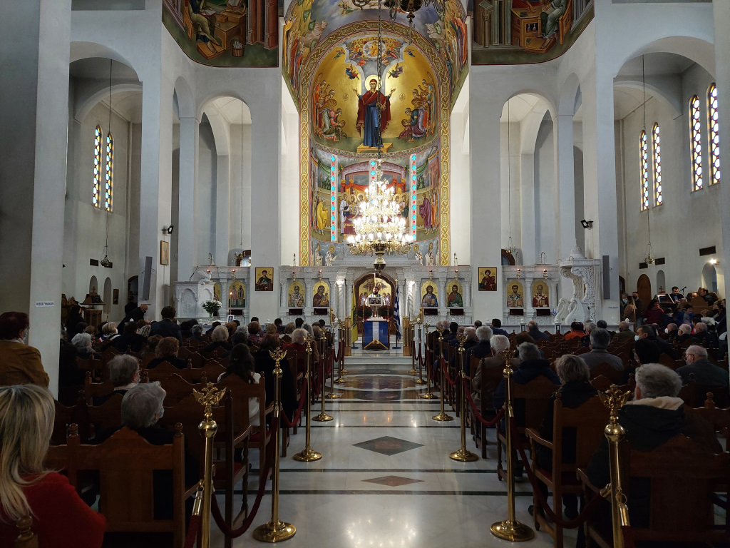 Αμέσως μετά τη δεύτερη θ. Λειτουργία τελέστηκε Δοξολογία από τους Πατέρες του Ναού, οι οποίοι στο τέλος μαζί με τον ευσεβή Λαό που μετείχε έψαλλαν τον Εθνικό Ύμνο και τραγούδησαν το γνωστό εμβατήριο «Μακεδονία ξακουστή…», με τις παιδικές φωνές να ξεχωρίζουν και να στέλνουν το μήνυμα της ελπίδας και της διαφύλαξης της πολύτιμης παρακαταθήκης των προγόνων μας.