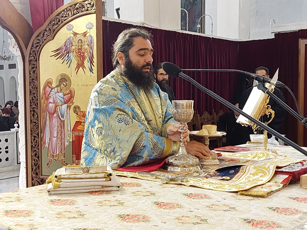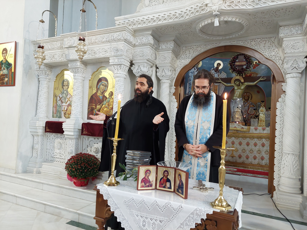 Στο λόγο του ο Αρχιμ. π. Μακάριος λόγω της σημερινής αλήστου μνήμης ημέρας ανέλυσε σύντομα την Ευαγγελική Περικοπή και μίλησε περιεκτικά για τον ένδοξο αιματηρό αγώνα και τις ηρωικές μορφές των Επισκόπων Γερμανού Καραβαγγέλη και Ιωακείμ του Γ, του Παύλου Μελά, του Ίωνα Δραγούμη, του Καπετάν Άγρα και Ράμναλη και άλλων πρωταγωνιστών του Μακεδονικού Αγώνα.