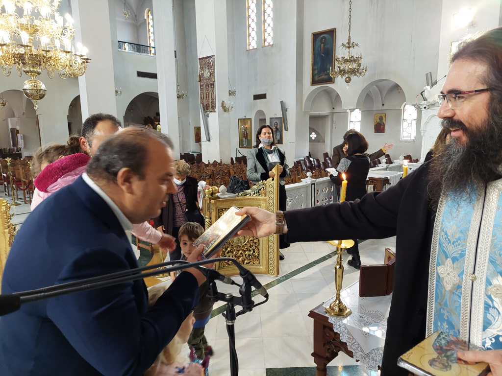 Οι Πατέρες ευχήθηκαν καλή, καρποφόρα και δημιουργική χρονιά με τις πρεσβείες του Αγίου Φωτίου του Μεγάλου, δωρίζοντας σε όλους από μία Εικόνα του Προστάτου της Ενορίας.
