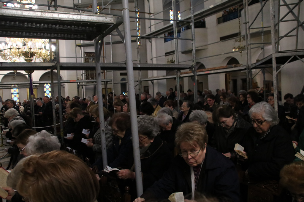Η απόδοση των ύμνων από τους εξαιρετικούς χορούς των Ιεροψαλτών και η ανάγνωση των δώδεκα Ευαγγελίων από τους Πατέρες του Ιερού Ναού περιέγραψαν με συγκλονιστικό τρόπο από τον Μυστικό Δείπνο, την προσευχή του Κυρίου μας στο Όρος των Ελαιών, την προδοσία του Ιούδα, τη δίκη Του Χριστού μας από τους αρχιερείς και τον Πόντιο Πιλάτο, έως την ανάβασή Του στον Γολγοθά και τη Σταύρωσή Του.