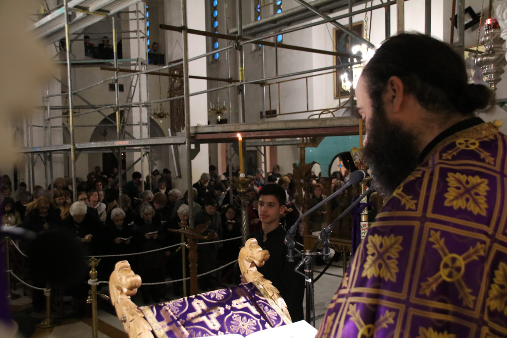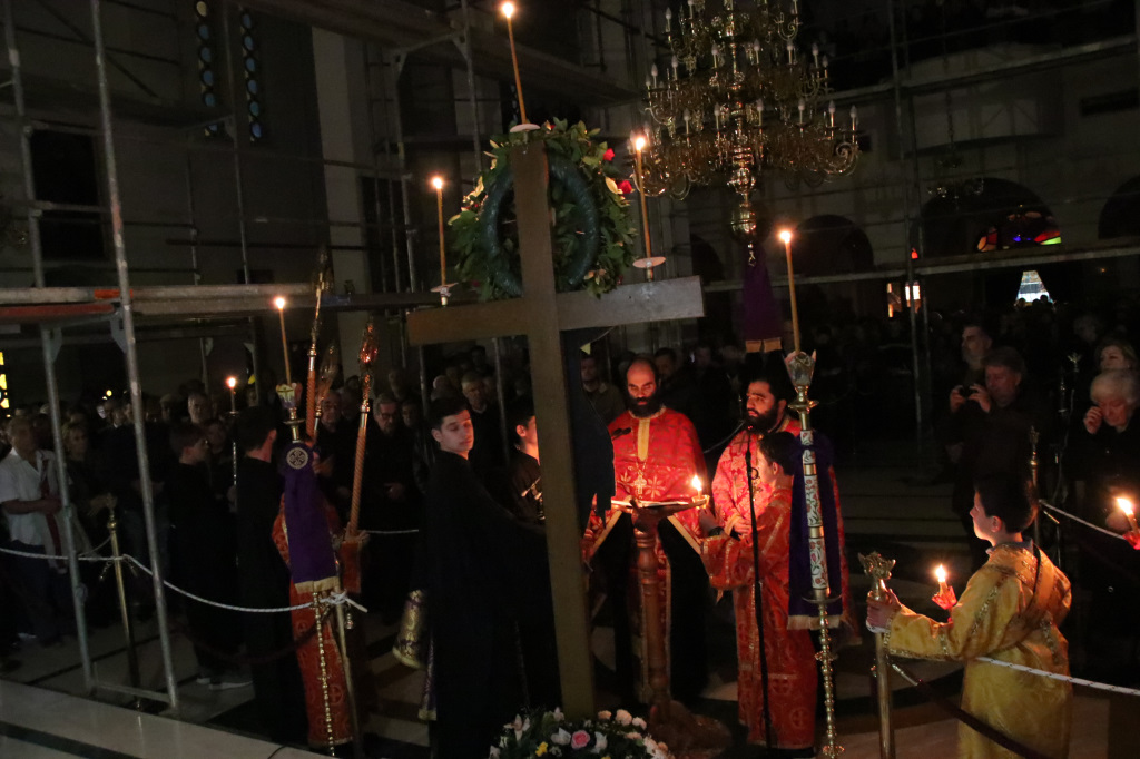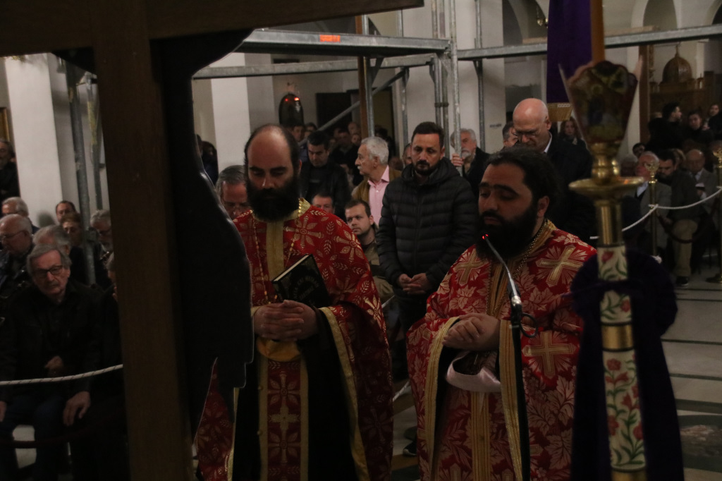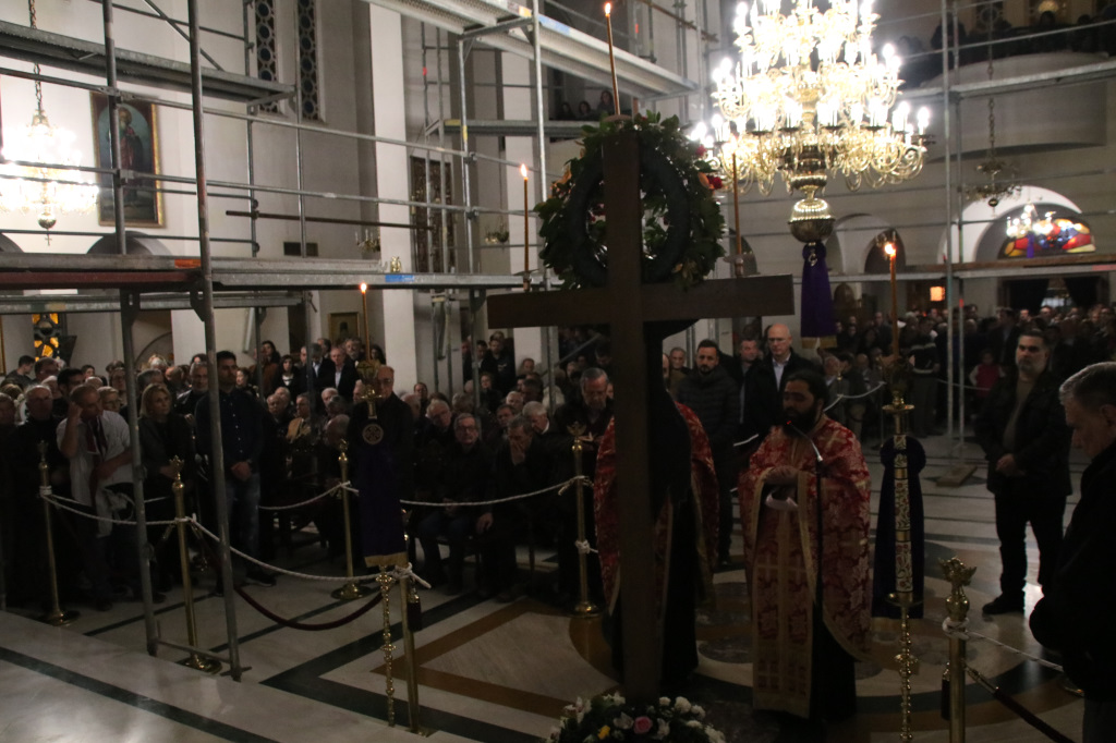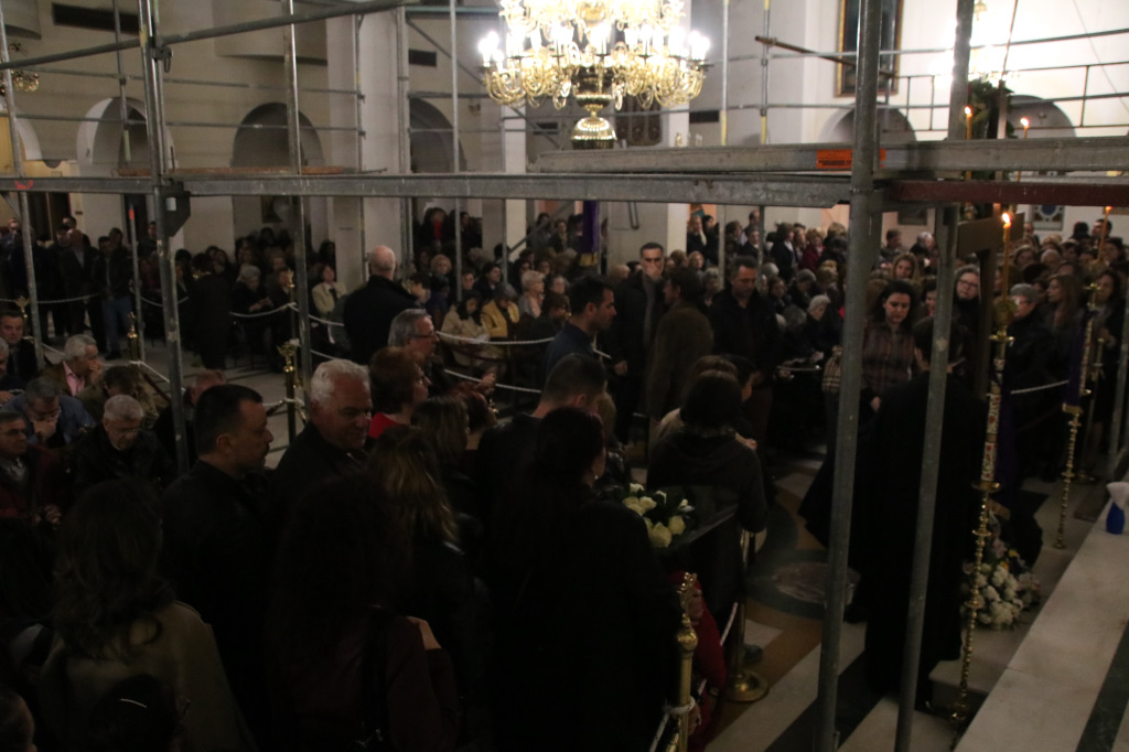 Μέσα σε ένα ιδιαίτερο κλίμα κατάνυξης αλλά και συγκίνησης πλήθος ευσεβών πιστών συμμετείχε στην Ακολουθία των Αχράντων Παθών (ο Όρθρος της Μεγάλης Παρασκευής) και της Σταυρώσεως του Κυρίου μας, στην οποία διαβάζονται τα δώδεκα Ευαγγέλια, μέσα στα οποία εξιστορείται και αναλύεται η πορεία του Κυρίου μας προς τον Σταυρό, στον περικαλλή Ιερό Ναό του Αγίου Φωτίου του Μεγάλου στη νέα παραλία Θεσσαλονίκης.
