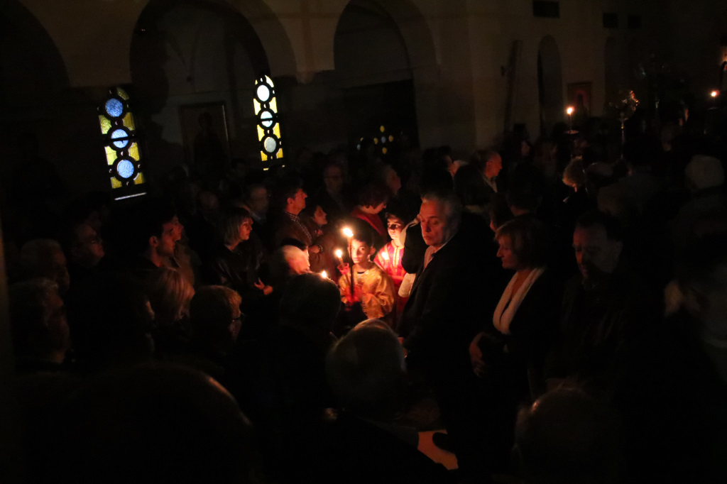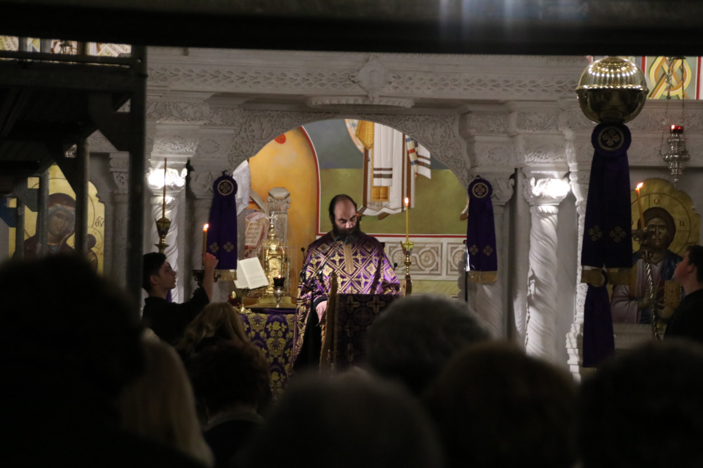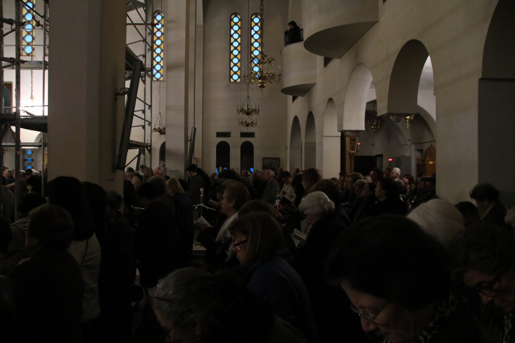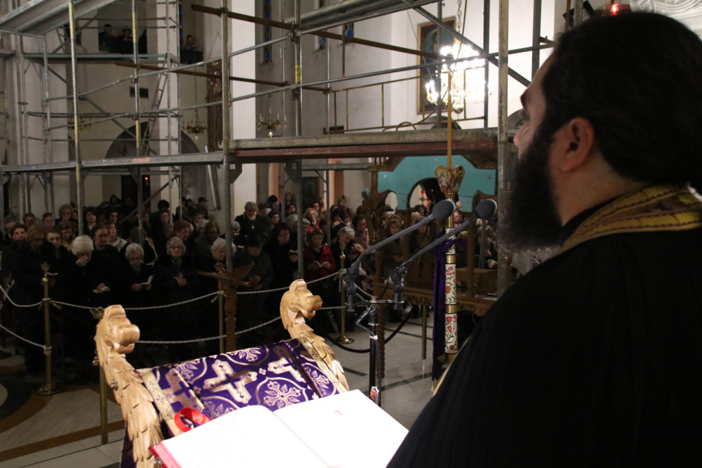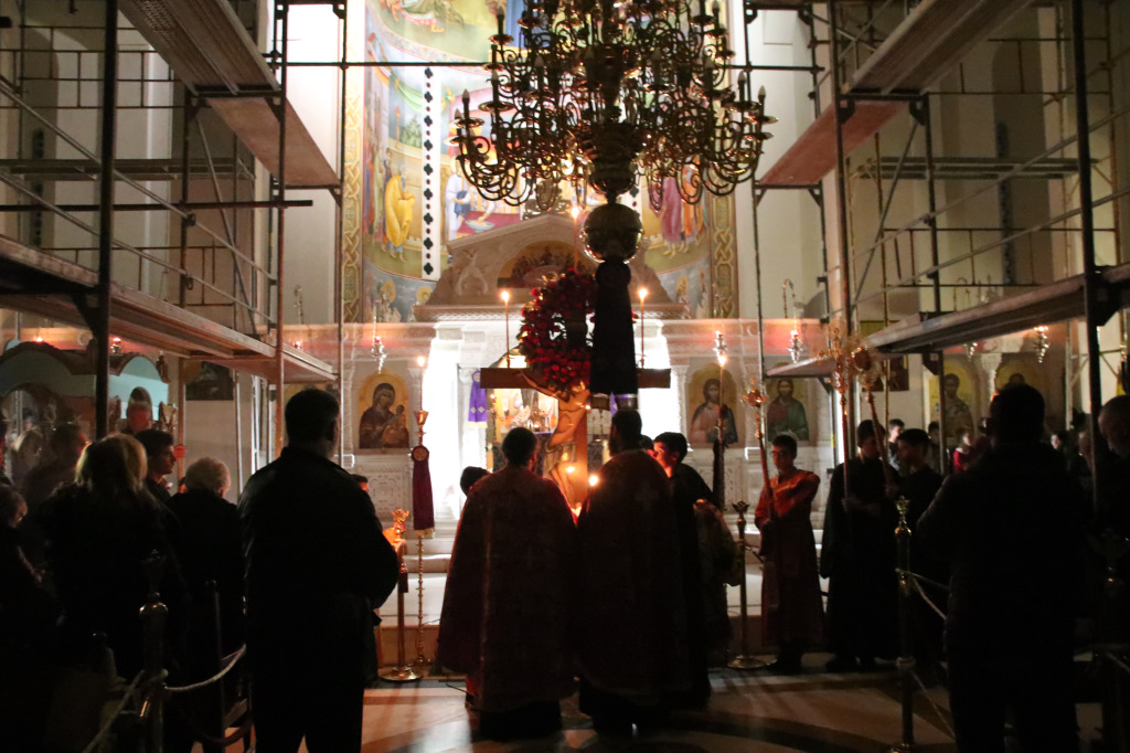 Μέσα σε ένα ιδιαίτερο κλίμα κατάνυξης αλλά και συγκίνησης πλήθος ευσεβών πιστών συμμετείχε στην Ακολουθία των Αχράντων Παθών (ο Όρθρος της Μεγάλης Παρασκευής) και της Σταυρώσεως του Κυρίου μας, στην οποία διαβάζονται τα δώδεκα Ευαγγέλια, μέσα στα οποία εξιστορείται και αναλύεται η πορεία του Κυρίου μας προς τον Σταυρό, στον περικαλλή Ιερό Ναό του Αγίου Φωτίου του Μεγάλου στη νέα παραλία Θεσσαλονίκης.