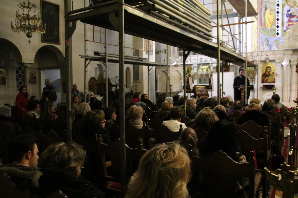 «Υπόδεξαι Βηθλεέμ», «Μέγα και Πάραδοξον Θαύμα σε», «Ουρανός και η γή σήμερον προφητικώς ευφραινέσθωσαν». Με θαυμάσιους ύμνους που περιγράφουν το χαρμόσυνο γεγονός της Θείας Ενανθρωπίσεως, με τροπάρια που δημιουργούν ρίγη συγκινήσεως και με παραδοσιακά κάλαντα απ’ όλη την Ελλάδα καλωσόρισαν τα Χριστούγεννα οι Ενορίτες του Ιερού Ναού Αγίου Φωτίου του Μεγάλου στη νέα παραλία Θεσσαλονίκης, το απόγευμα του Σαββάτου 16 Δεκεμβρίου 2017.