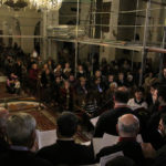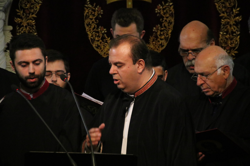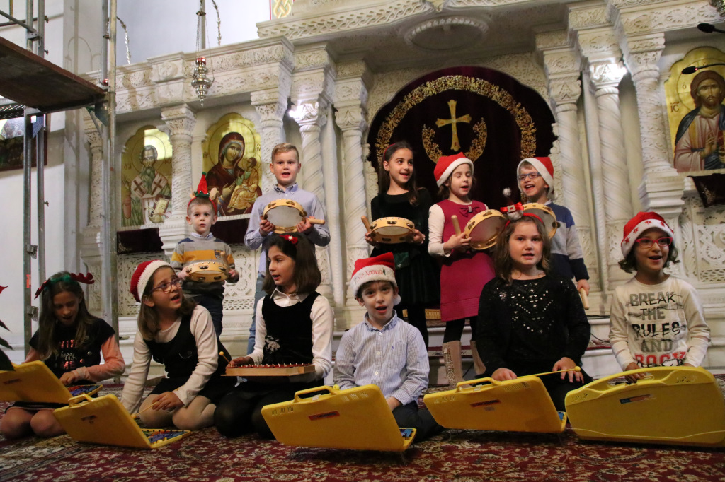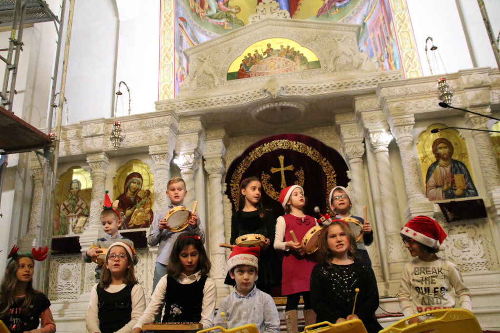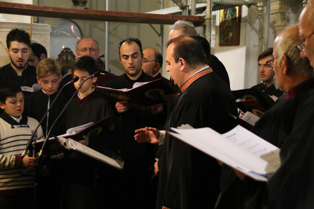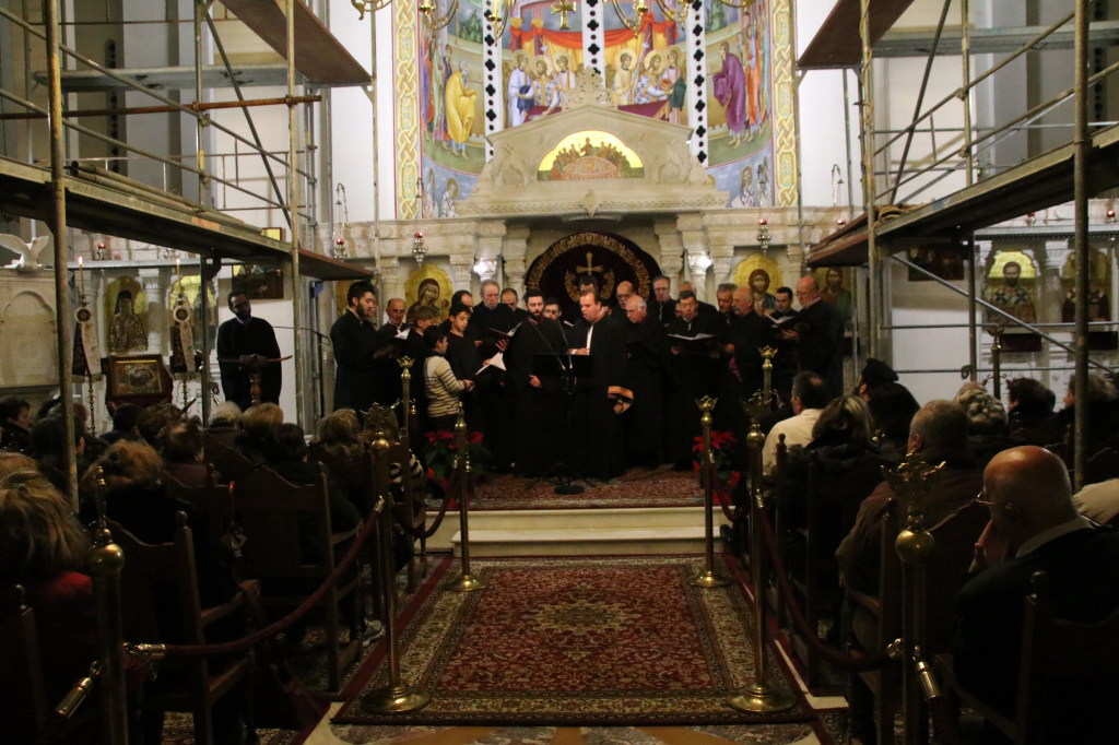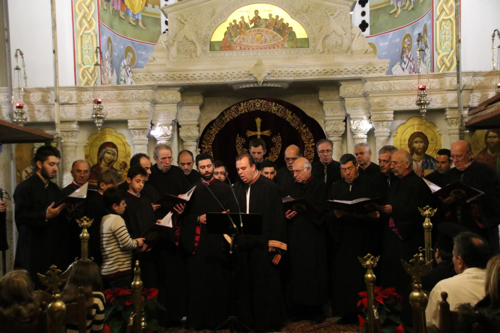Στη συνέχεια του εορταστικού προγράμματος ο βυζαντινός χορός του Ναού «Φώτιος ο Μέγας» υπό τη διεύθυνση του χοράρχου και Πρωτοψάλτου κ. Στυλιανού Ζαχαρίου έψαλλε ύμνους και τροπάρια των Χριστουγέννων, προετοιμάζοντας τους συμμετέχοντες για τον ερχομό της μεγάλης γιορτής της Χριστιανοσύνης δημιουργώντας παράλληλα συνθήκες προσευχής και κατάνυξης.