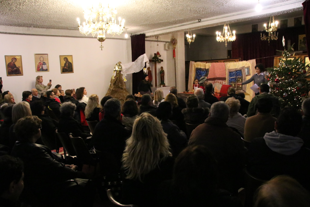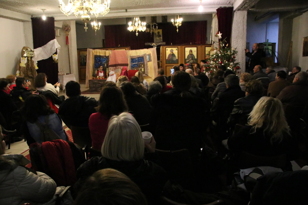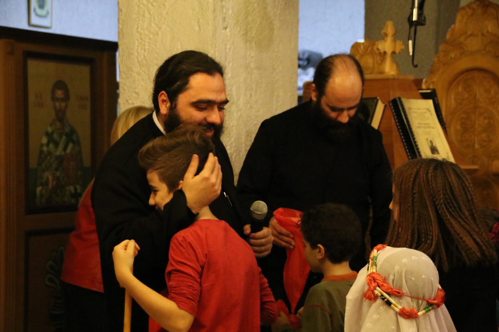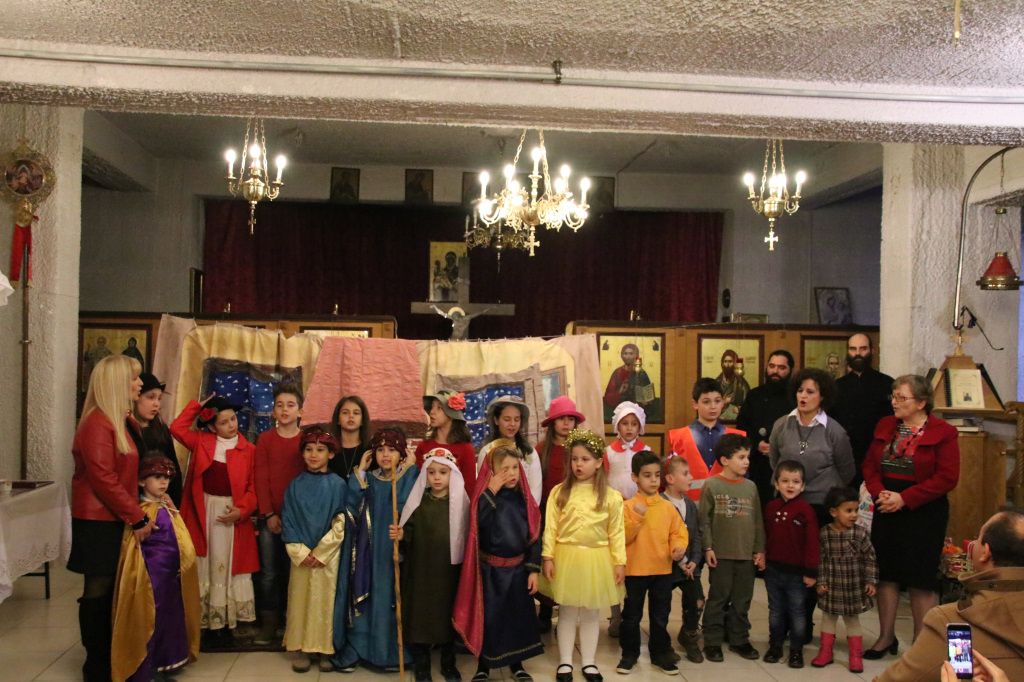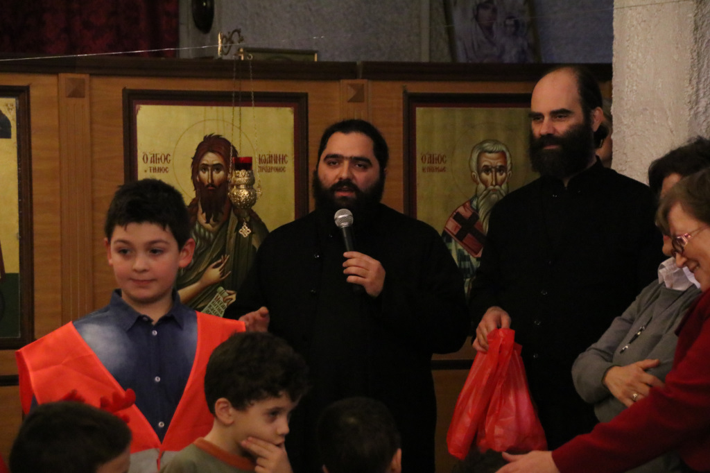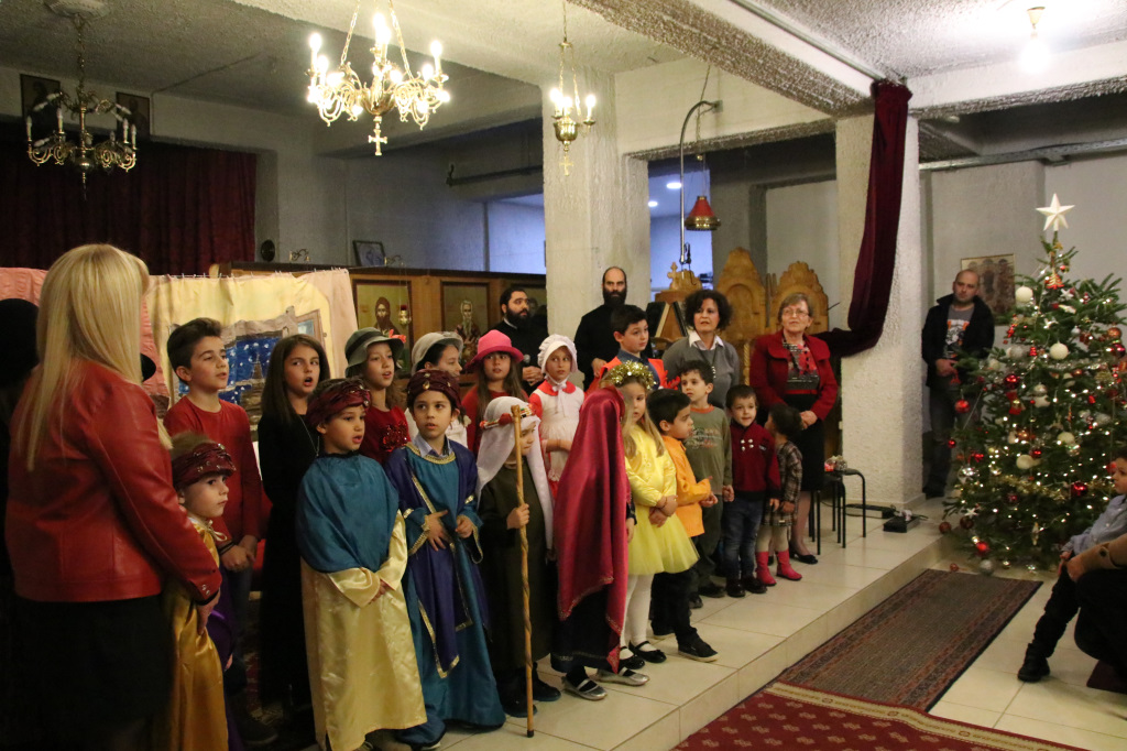 Η Γιορτή συνεχίστησε στον κάτω όροφο του Ναού, όπου πρωταγωνιστές ήταν τα παιδιά των Κατηχητικών, τα οποία παρουσίασαν θαυμάσια ένα θεατρικό δρώμενο «Τα Χριστούγεννα του μπαρμπά Πανώφ» και έστειλαν δυνατά το μήνυμα της απλότητας και της αγάπης. Ο ερχομός του Κυρίου και η αγάπη που σκόρπισε στον κόσμο, το βαθύτερο νόημα των Χριστουγέννων, μέσα από τα αθώα μάτια των παιδιών, τα οποία ευχαρίστησε μέσα από την καρδιά του ο π. Μακάριος μαζί με τον π. Θεοδόσιο, αμφότεροι Εφημέριοι του Ναού, μοιράζοντας σε όλα δώρα. Μαζί με τις καθιερωμένες ευχές, εξέφρασαν και τις θερμές ευχαριστίες τους σε όλους όσοι συμμετείχαν στην όμορφη αυτή γιορτή, τα παιδιά, τους κατηχητές και τους ιεροψάλτες καθώς και τους ενορίτες που πάντοτε στηρίζουν την προσπάθεια του Ναού με την ενεργή συμμετοχή τους.
