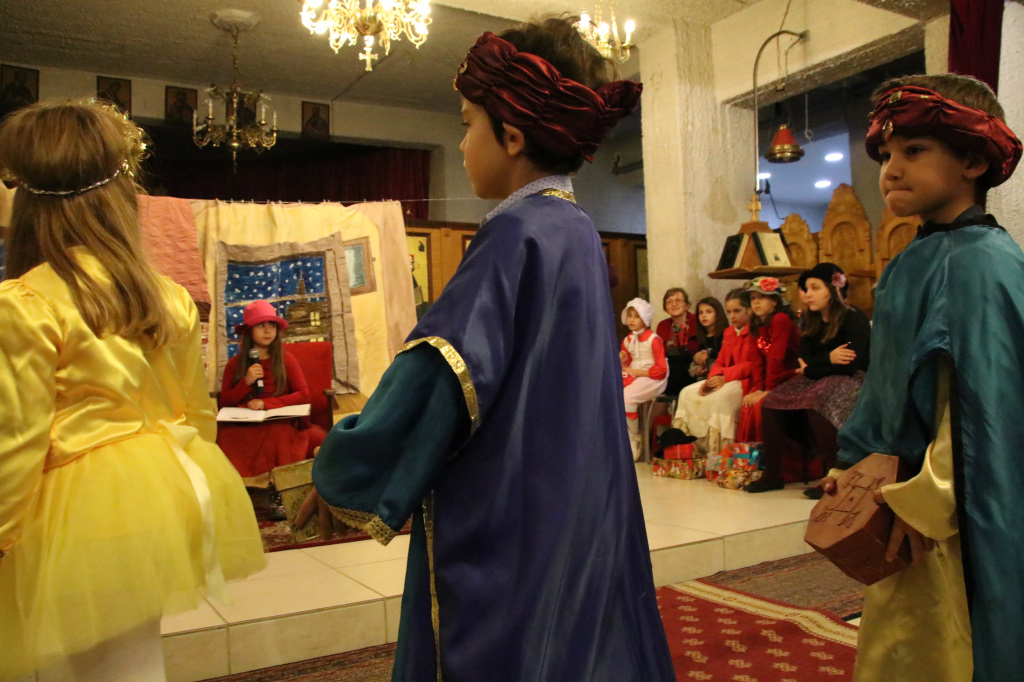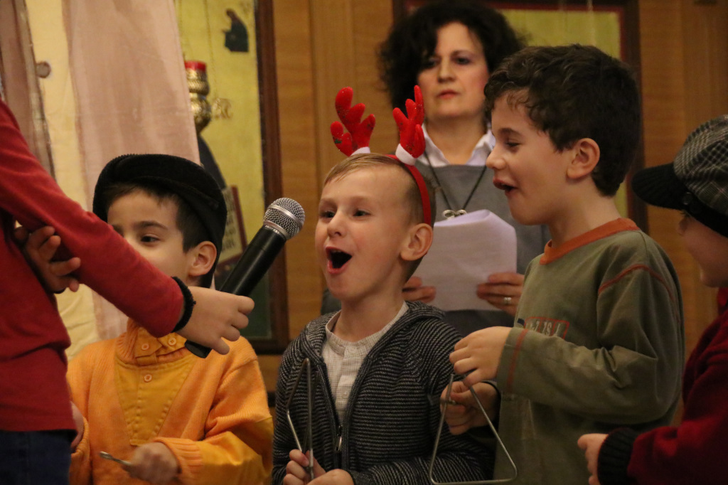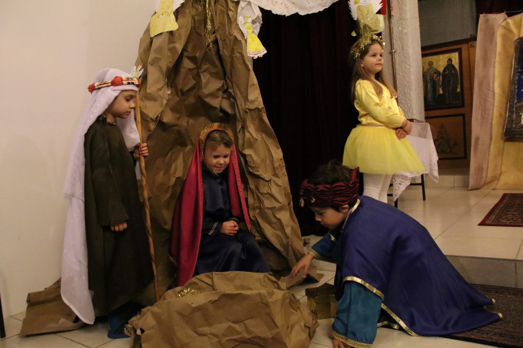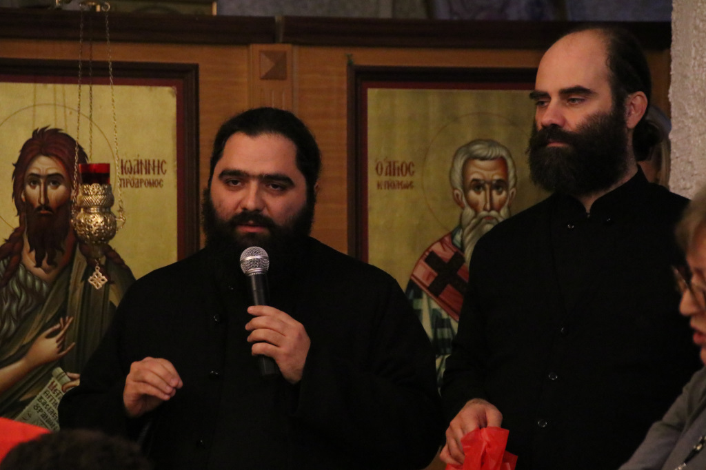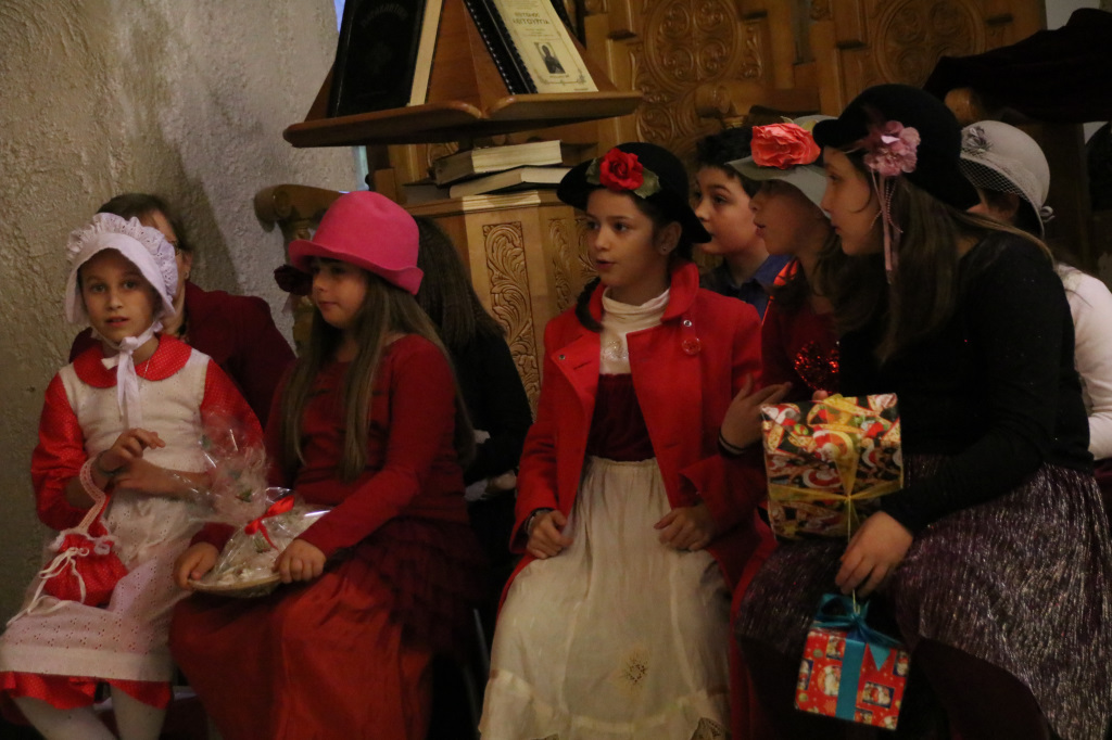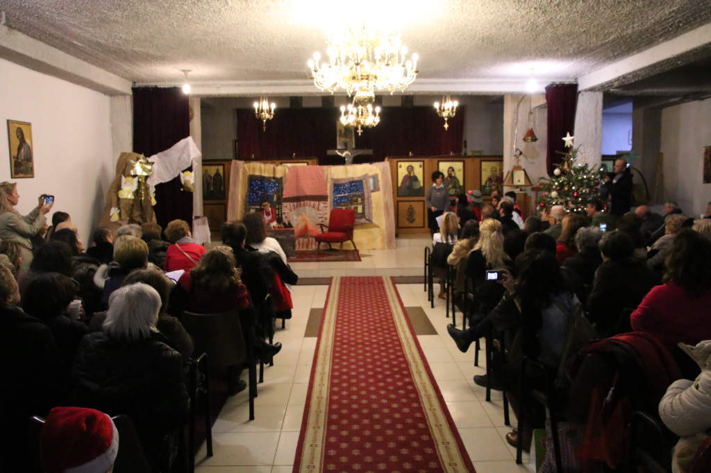 Η Γιορτή συνεχίστησε στον κάτω όροφο του Ναού, όπου πρωταγωνιστές ήταν τα παιδιά των Κατηχητικών, τα οποία παρουσίασαν θαυμάσια ένα θεατρικό δρώμενο «Τα Χριστούγεννα του μπαρμπά Πανώφ» και έστειλαν δυνατά το μήνυμα της απλότητας και της αγάπης. Ο ερχομός του Κυρίου και η αγάπη που σκόρπισε στον κόσμο, το βαθύτερο νόημα των Χριστουγέννων, μέσα από τα αθώα μάτια των παιδιών, τα οποία ευχαρίστησε μέσα από την καρδιά του ο π. Μακάριος μαζί με τον π. Θεοδόσιο, αμφότεροι Εφημέριοι του Ναού, μοιράζοντας σε όλα δώρα. Μαζί με τις καθιερωμένες ευχές, εξέφρασαν και τις θερμές ευχαριστίες τους σε όλους όσοι συμμετείχαν στην όμορφη αυτή γιορτή, τα παιδιά, τους κατηχητές και τους ιεροψάλτες καθώς και τους ενορίτες που πάντοτε στηρίζουν την προσπάθεια του Ναού με την ενεργή συμμετοχή τους.