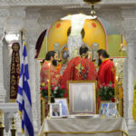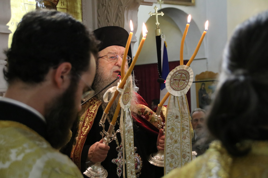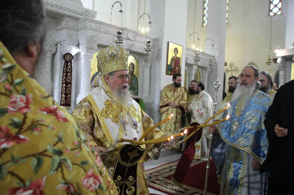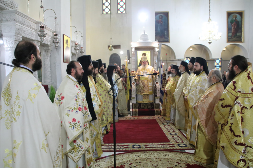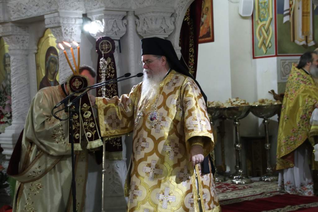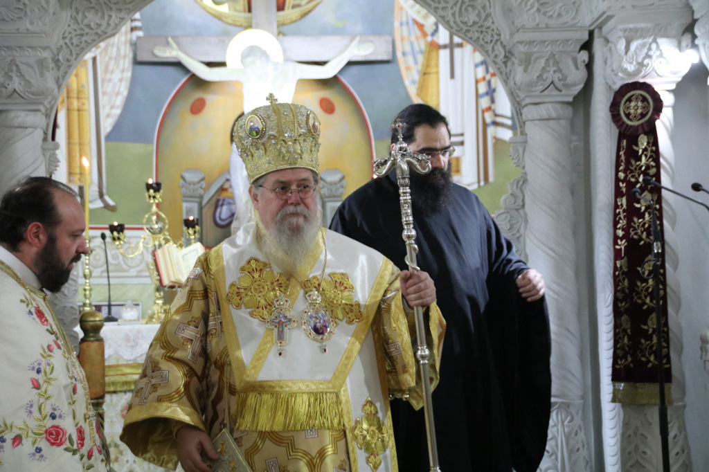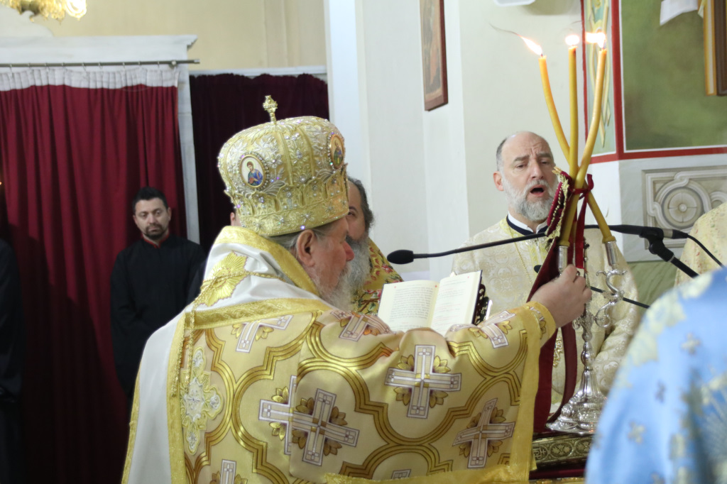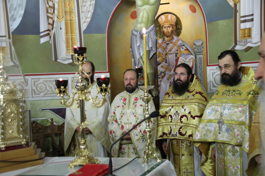 Ανήμερα τελέσθηκε μέσα σε ατμόσφαιρα πνευματικής χαράς, πανηγυρική Αρχιερατική Θ. Λειτουργία, ιερουργούντος του Σεβασμιωτάτου Μητροπολίτου Φιλίππων, Νεαπόλεως και Θάσου κ. Στεφάνου, με τη συμμετοχή Πατέρων και Ιεροδιακόνων.