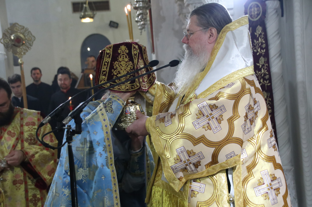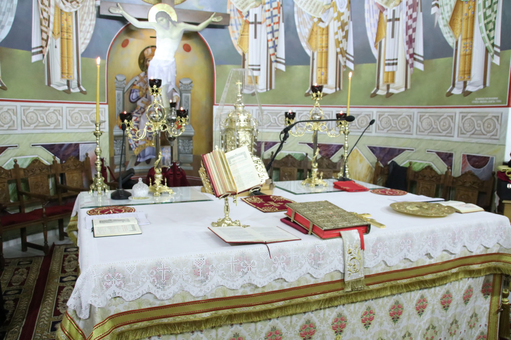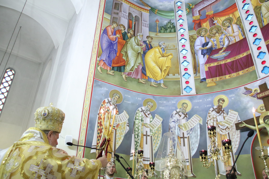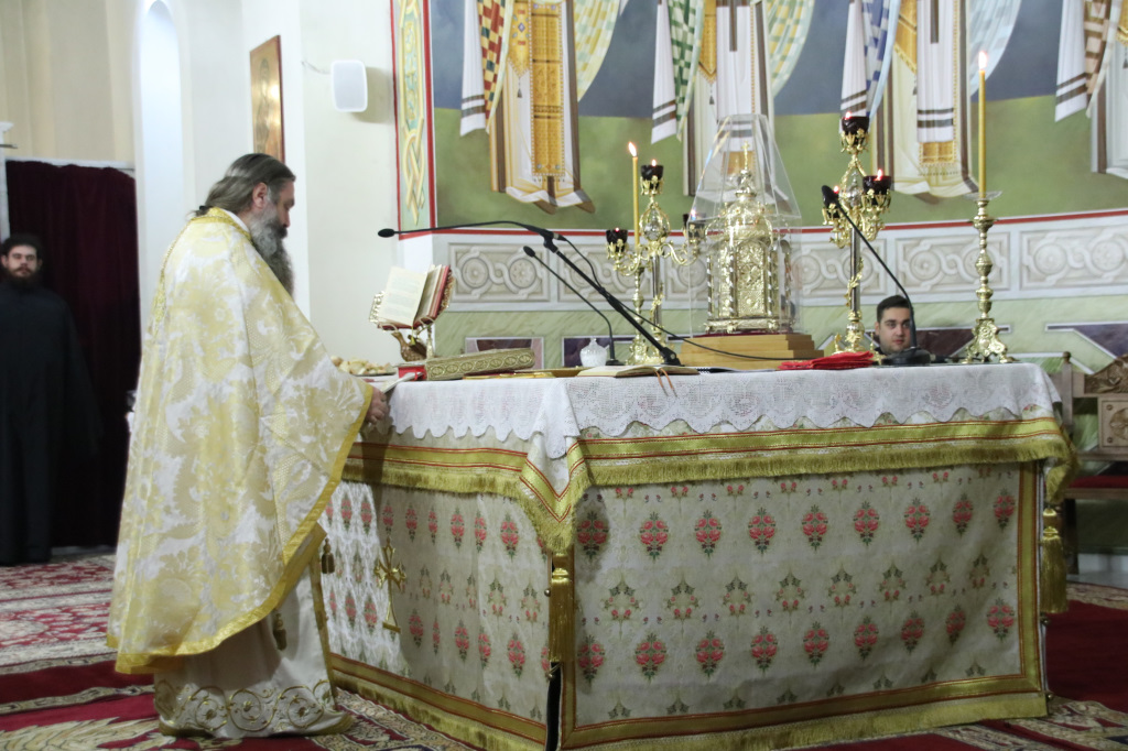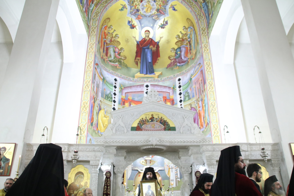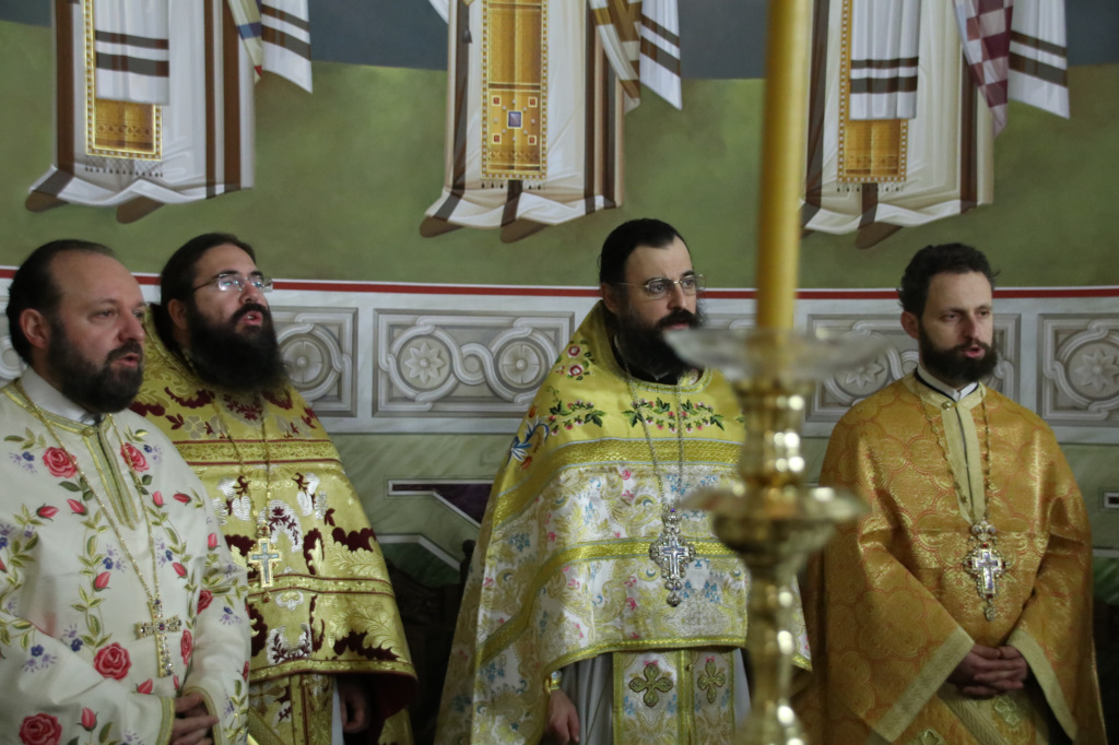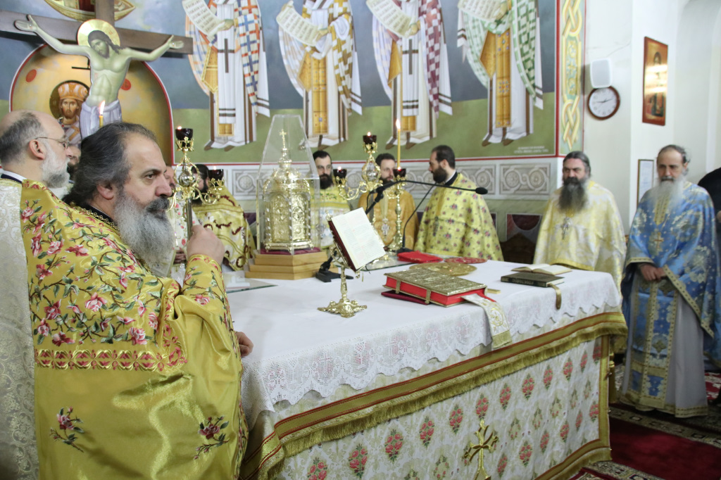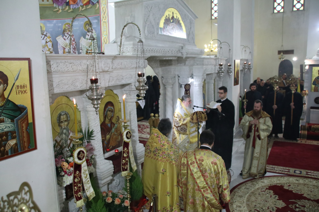 Ανήμερα τελέσθηκε μέσα σε ατμόσφαιρα πνευματικής χαράς, πανηγυρική Αρχιερατική Θ. Λειτουργία, ιερουργούντος του Σεβασμιωτάτου Μητροπολίτου Φιλίππων, Νεαπόλεως και Θάσου κ. Στεφάνου, με τη συμμετοχή Πατέρων και Ιεροδιακόνων.
