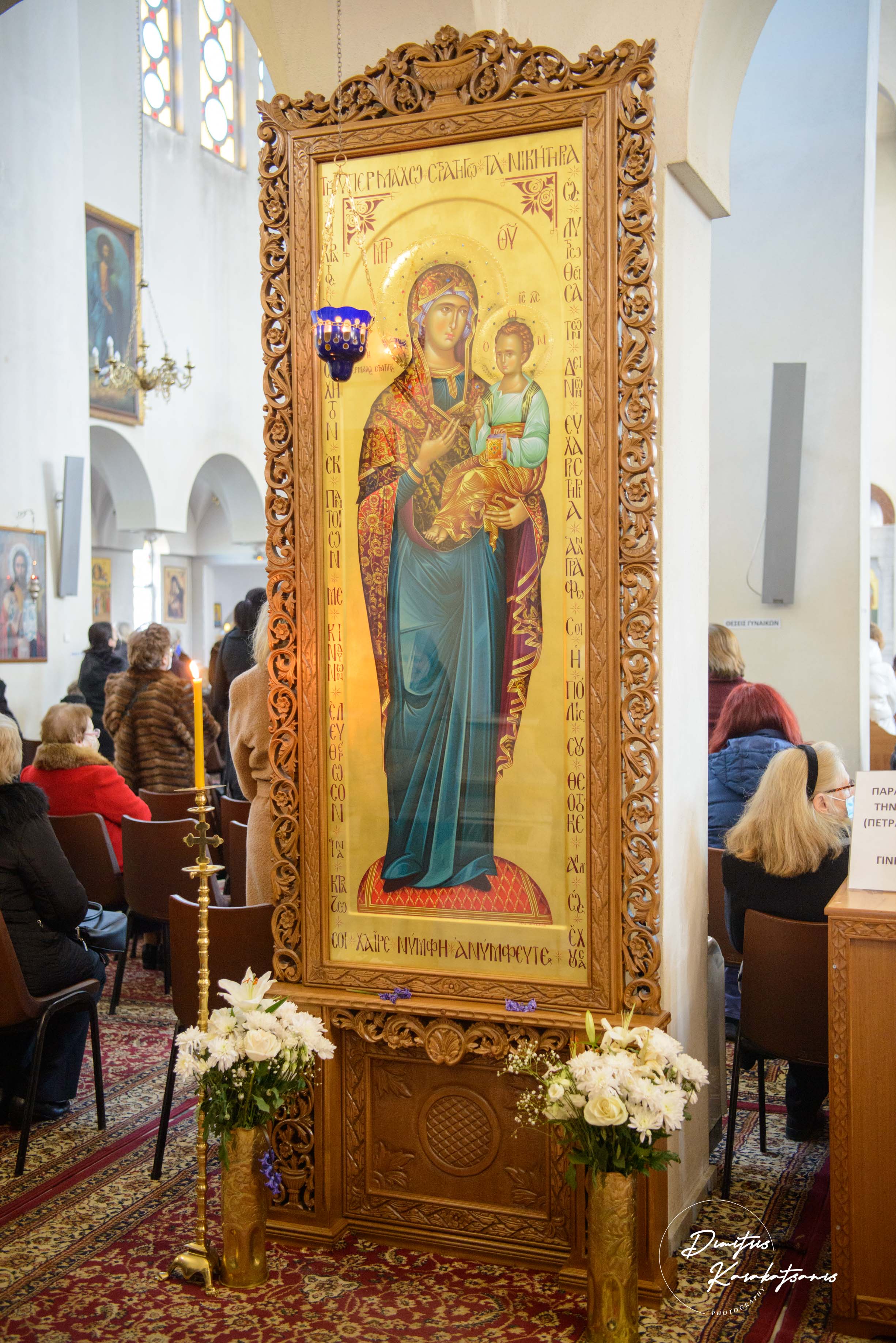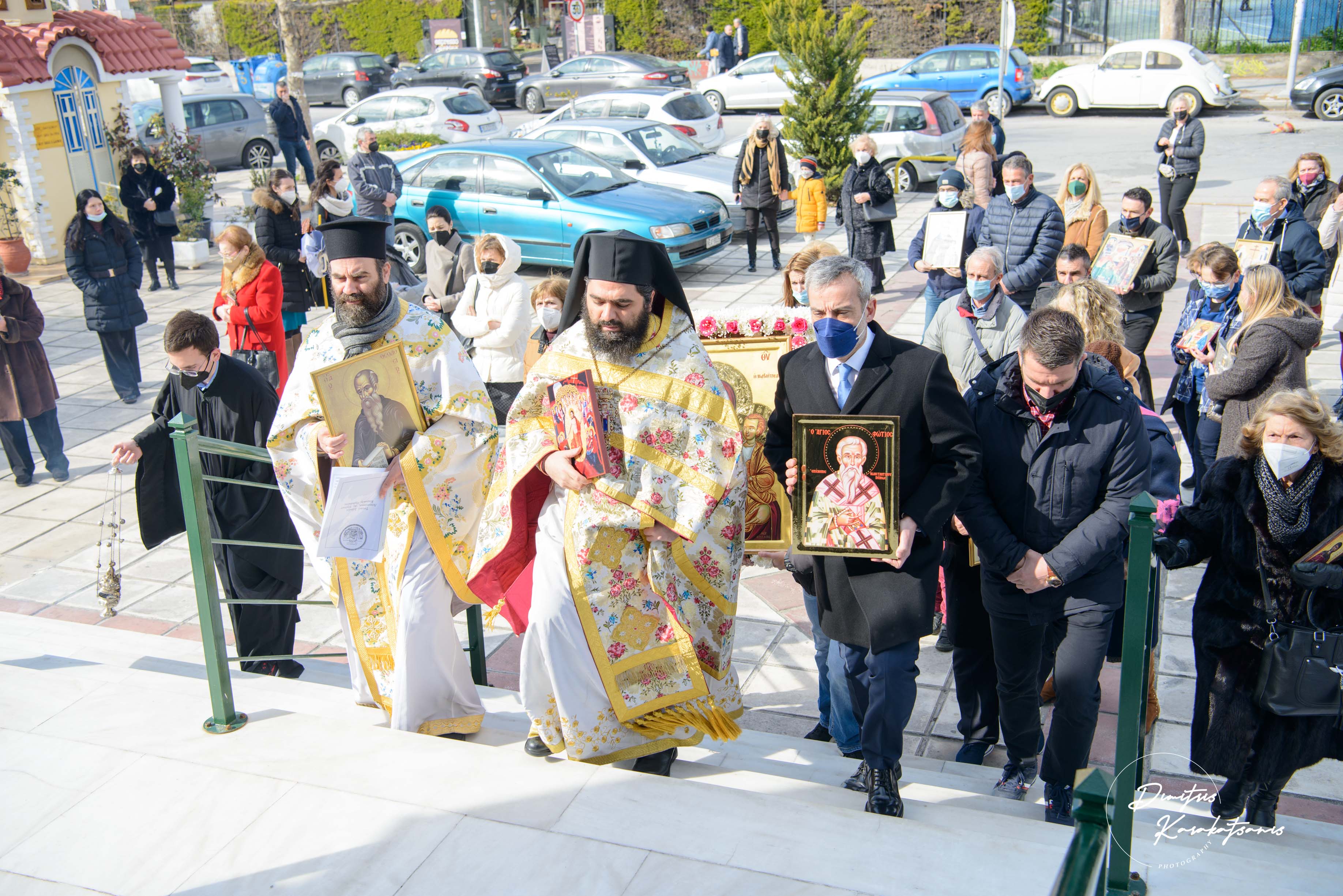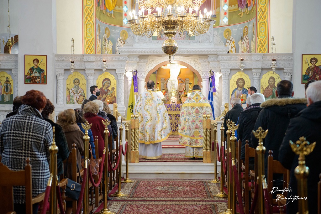 Το πρωί εψάλλει η Ακολουθία του Όρθρου και στην συνέχεια, με την συμμμετοχή ενοριτών και προσκυνητών, τελέστηκε η πανηγυρική Θεία Λειτουργία, τηρουμένων των μέτρων προστασίας της δημόσιας υγείας.