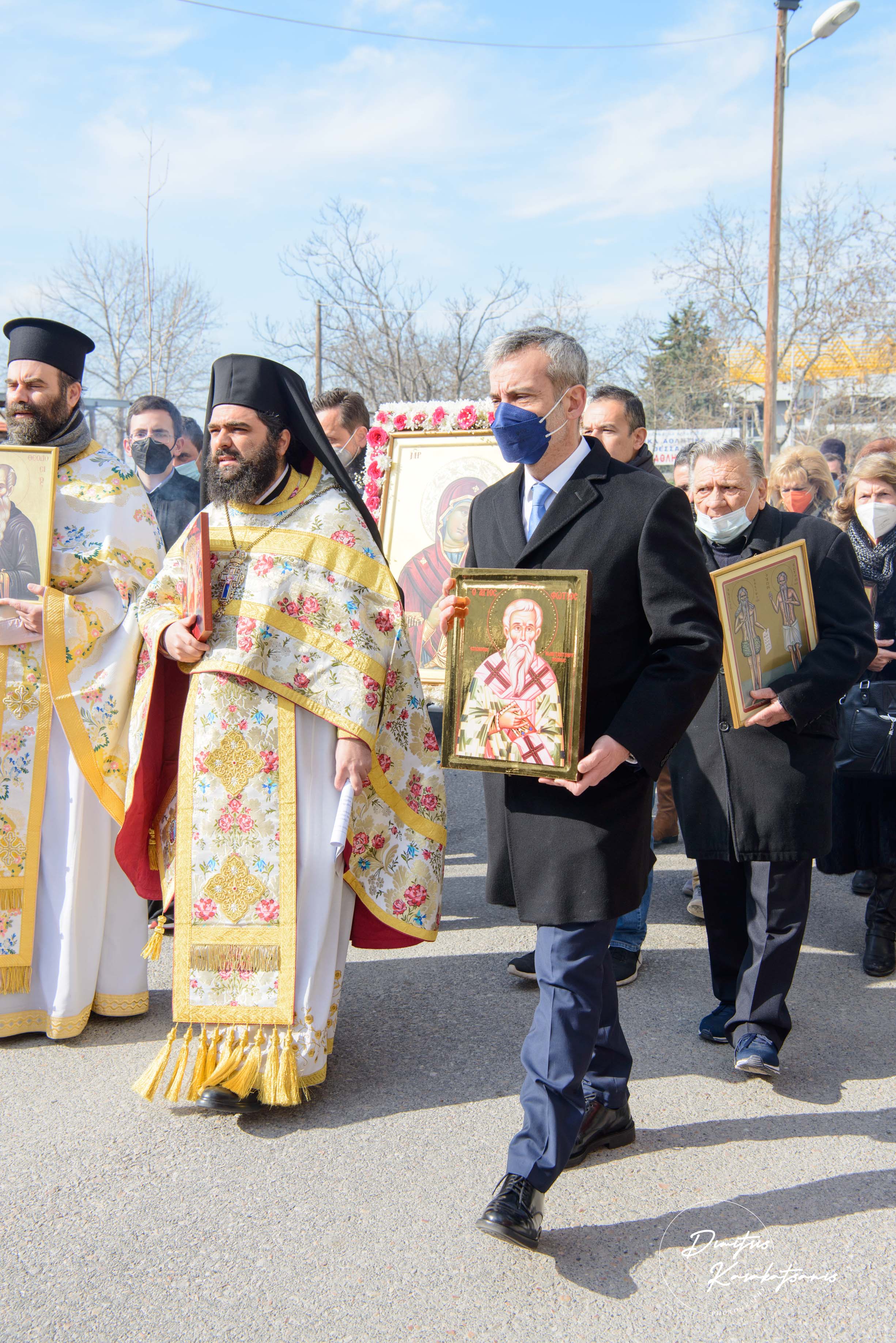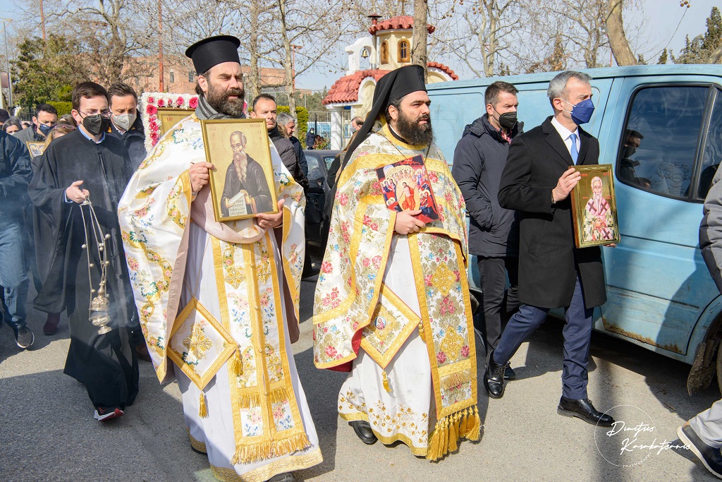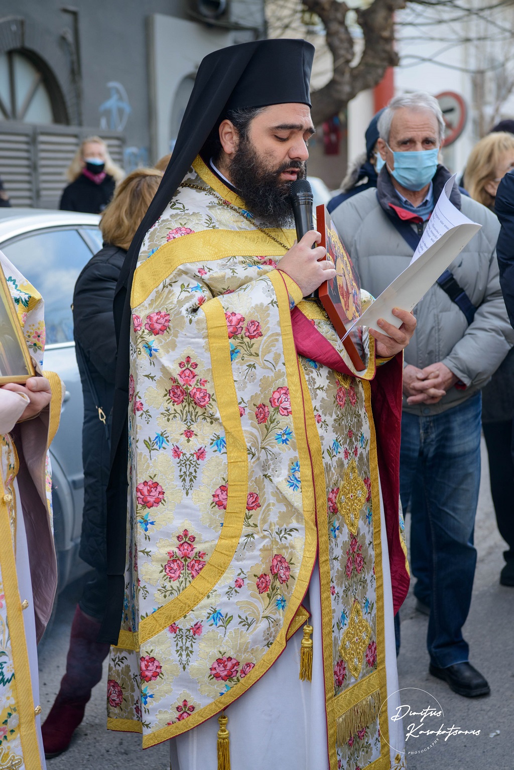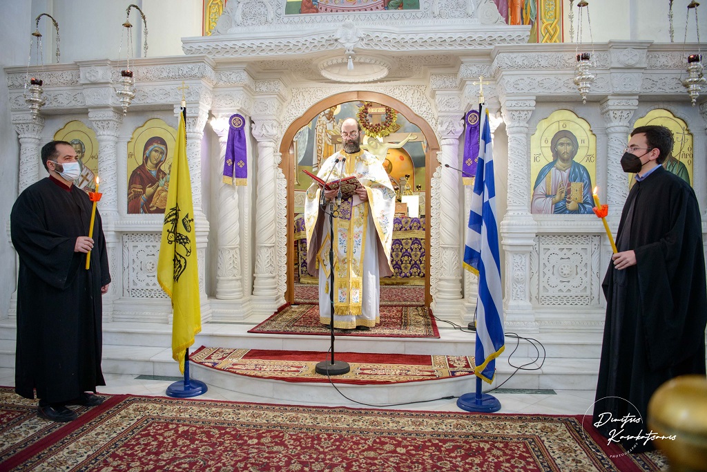 Κατά την τάξη της Αγίας μας Εκκλησίας πραγματοποιήθηκε λιτάνευση των Ιερών Εικόνων πέριξ του Ιερού Ναού και αναγνώσθηκε το Συνοδικό της Ορθοδοξίας.