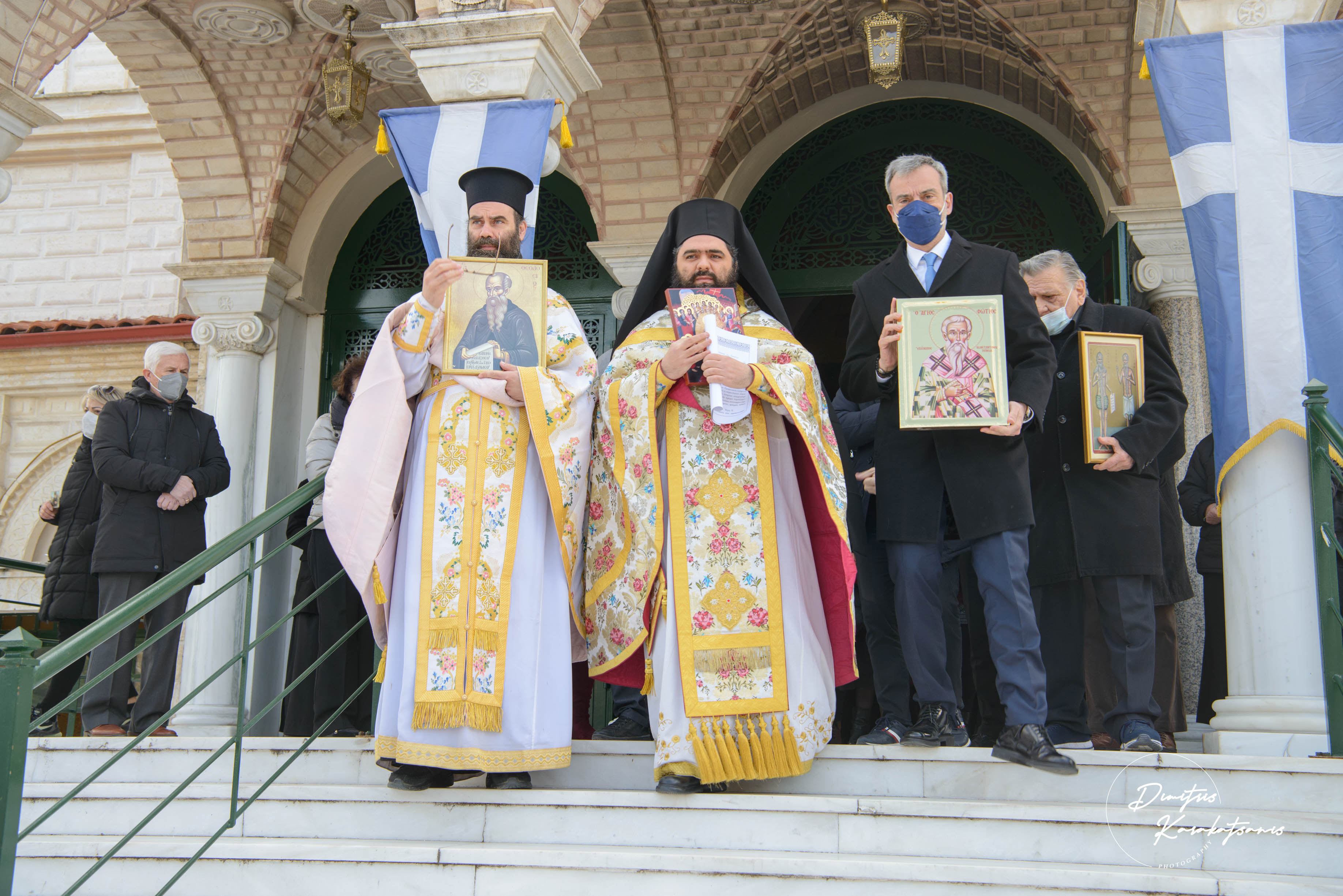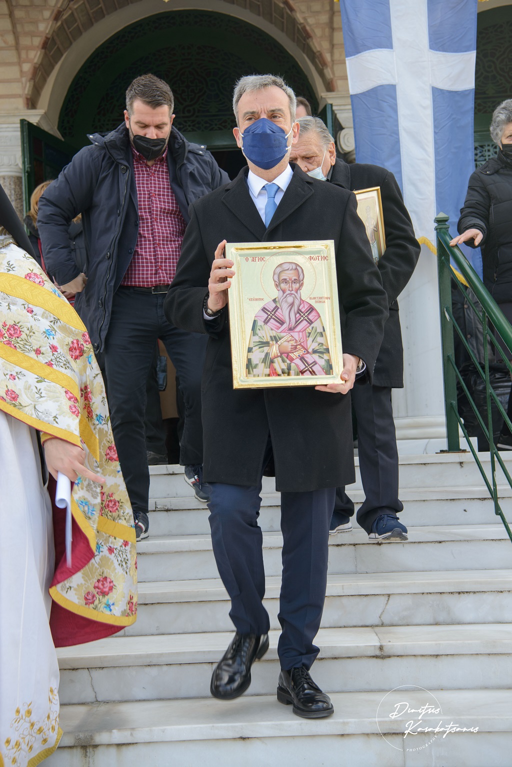 Στην λαμπρή Λειτουργία παρέστη συμπροσευχητικώς και ο Δήμαρχος Θεσσαλονίκης κ. Κωνσταντίνος Ζέρβας, τον οποίο ευχαρίστηκε καθηκόντως ο Προϊστάμενος του Ναού Αρχιμ. Μακάριος Τσιμέρης, για την υποστήριξή του στον φιλανθρωπικό τομέα της Ενορίας και του πρόσφερε σε ένδειξη ευγνωμοσύνης το Ιερό Εικόνισμα του Μεγάλου Φωτίου, αφενός για να τον ενισχύει στα καλά έργα προς όφελος των Θεσσαλονικέων, αφετέρου για να του παρέχει την σοφία του Αγίου στα βήματά του στην Πόλη του Αγίου Δημητρίου!