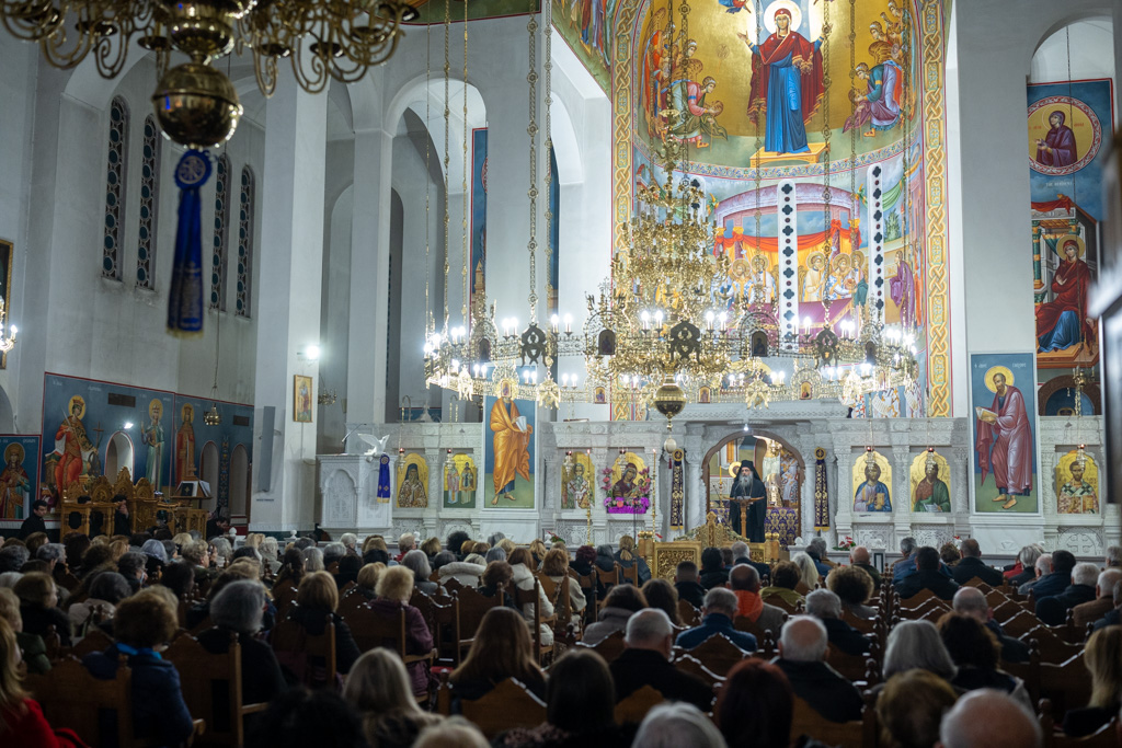 Μέσα σε κατανυκτική ατμόσφαιρα τελέσθηκε η Α’ Στάση των Χαιρετισμών προς την Υπεραγία Θεοτόκο στον περικαλλή Ιερό Ναό Αγίου Φωτίου του Μεγάλου Θεσσαλονίκης, το απόγευμα της Παρασκευής 27 Φεβρουαρίου 2026. Διαπλέοντες το πέλαγος της Αγίας και...