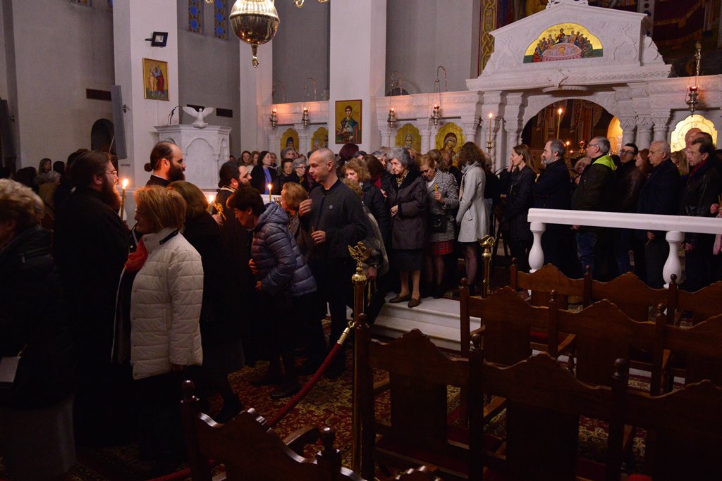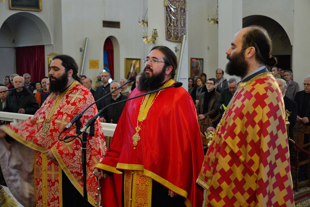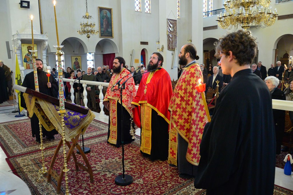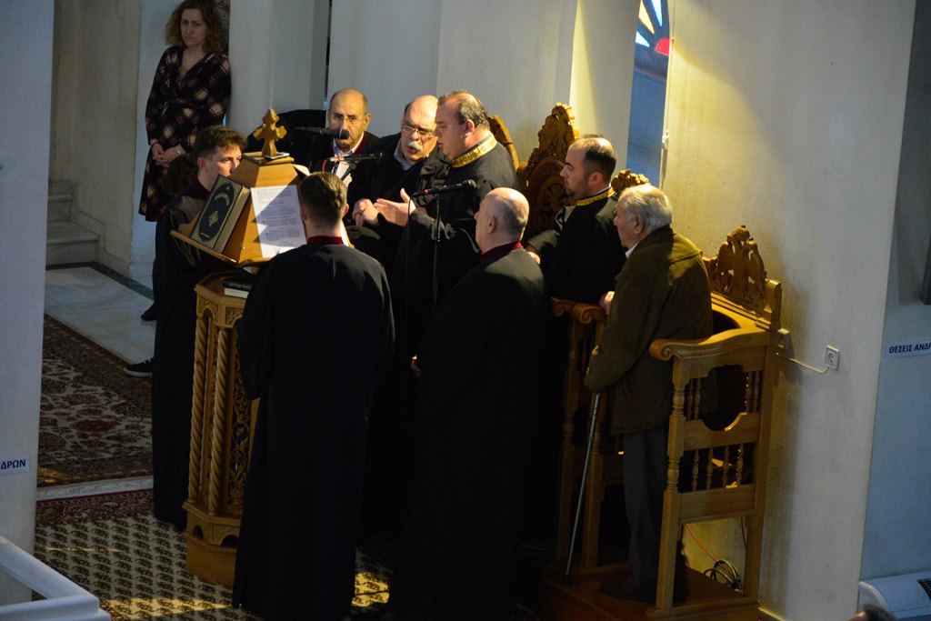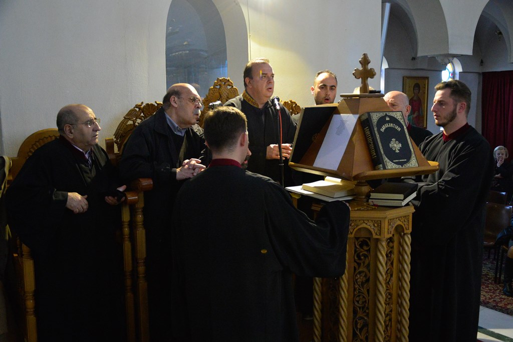 Οι Πατέρες του Ναού μαζί με τους Ιεροψάλτες έψαλλαν κατανυκτικά τα τροπάρια της Ακολουθίας ενώ στο τέλος ανεγνώσθη από τους Πατέρες και η συγχωρητική ευχή.