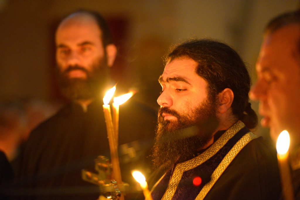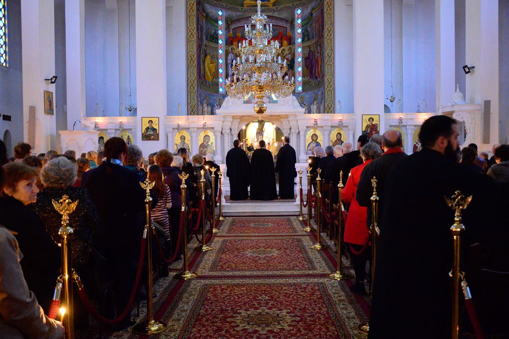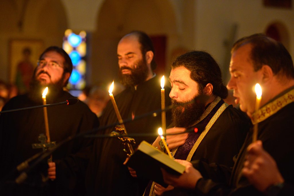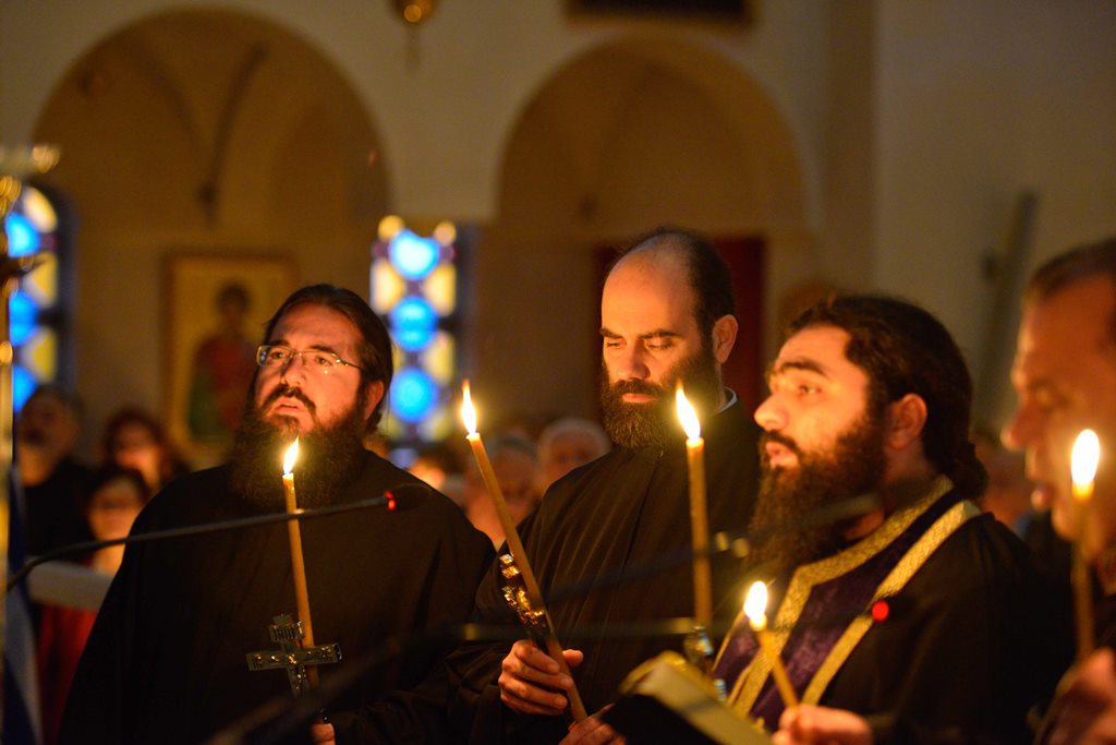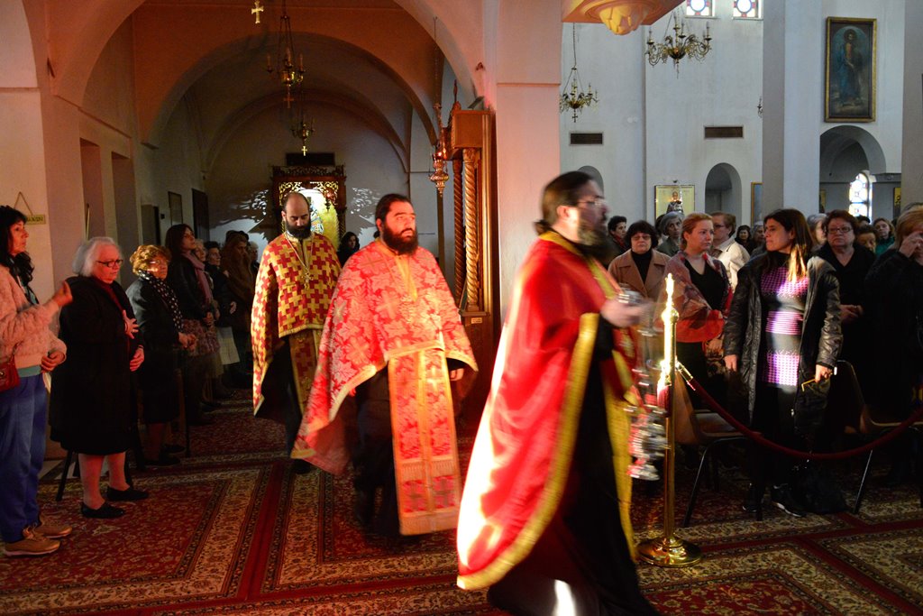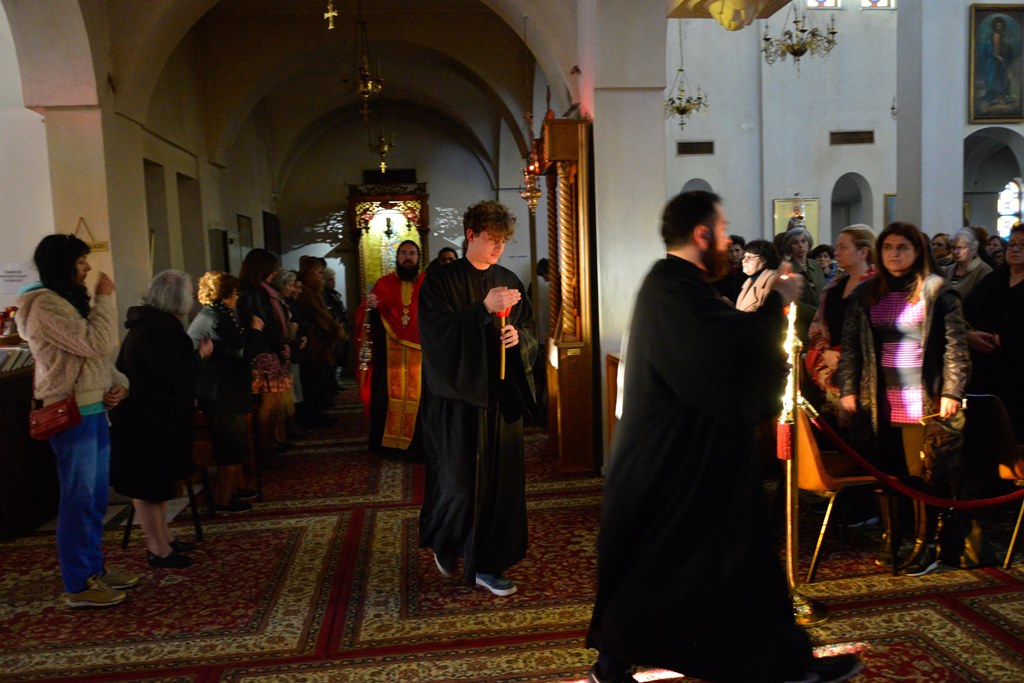 Οι Πατέρες του Ναού μαζί με τους Ιεροψάλτες έψαλλαν κατανυκτικά τα τροπάρια της Ακολουθίας ενώ στο τέλος ανεγνώσθη από τους Πατέρες και η συγχωρητική ευχή.
