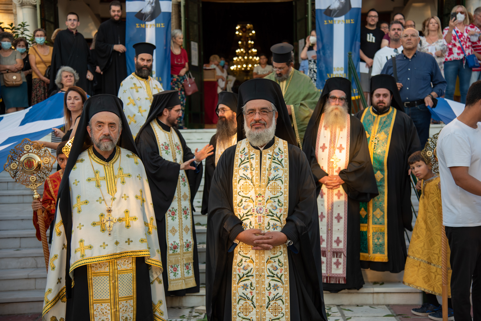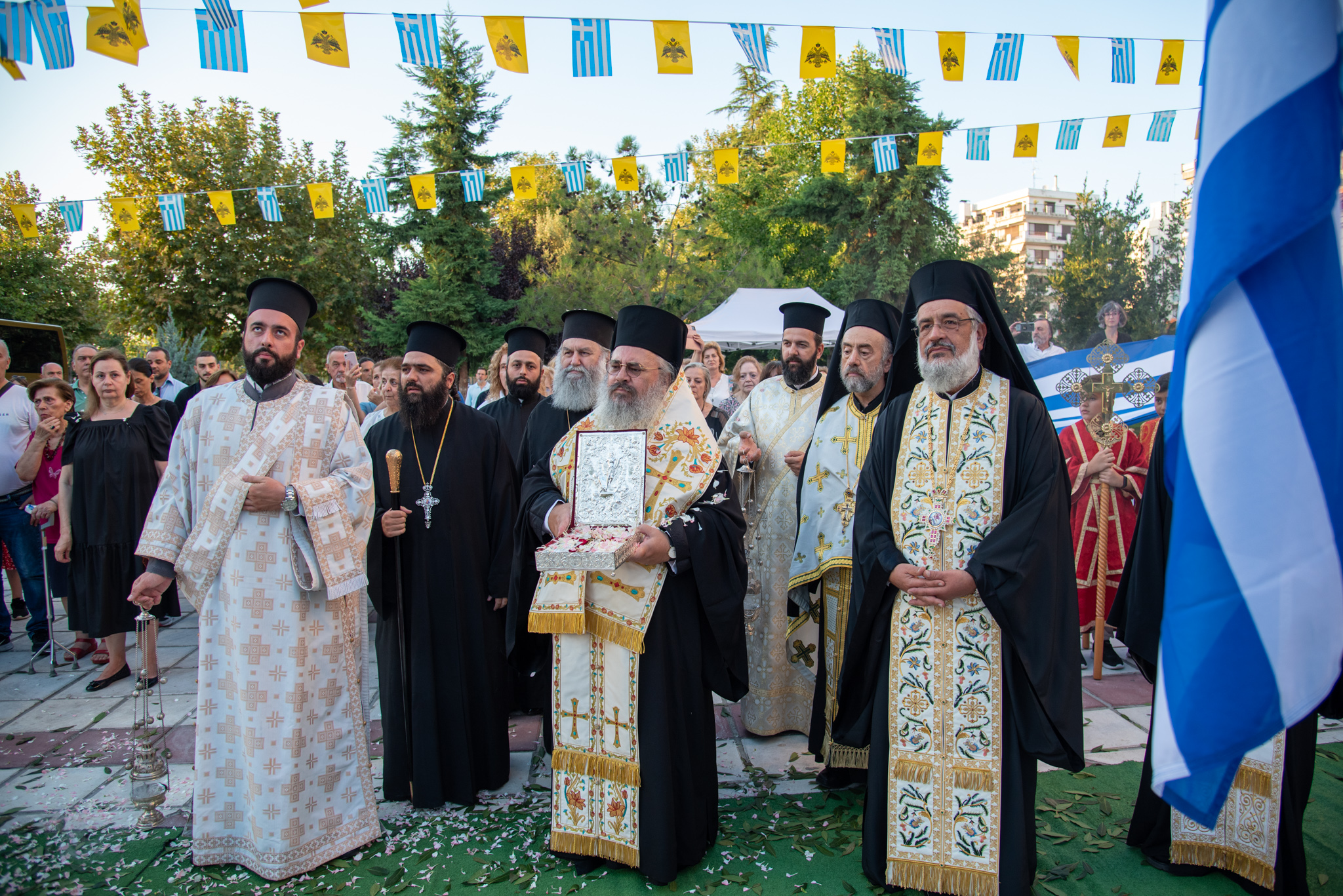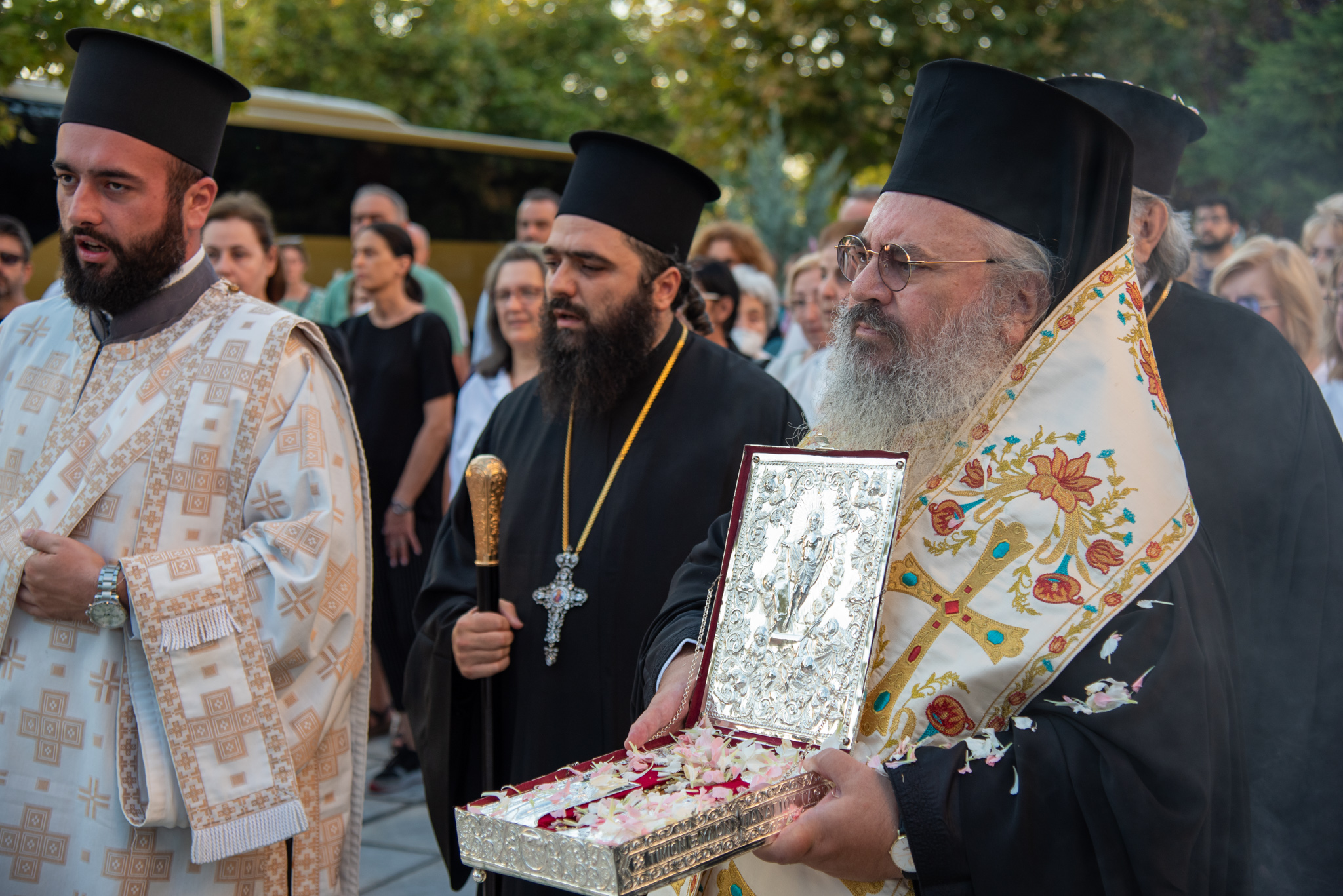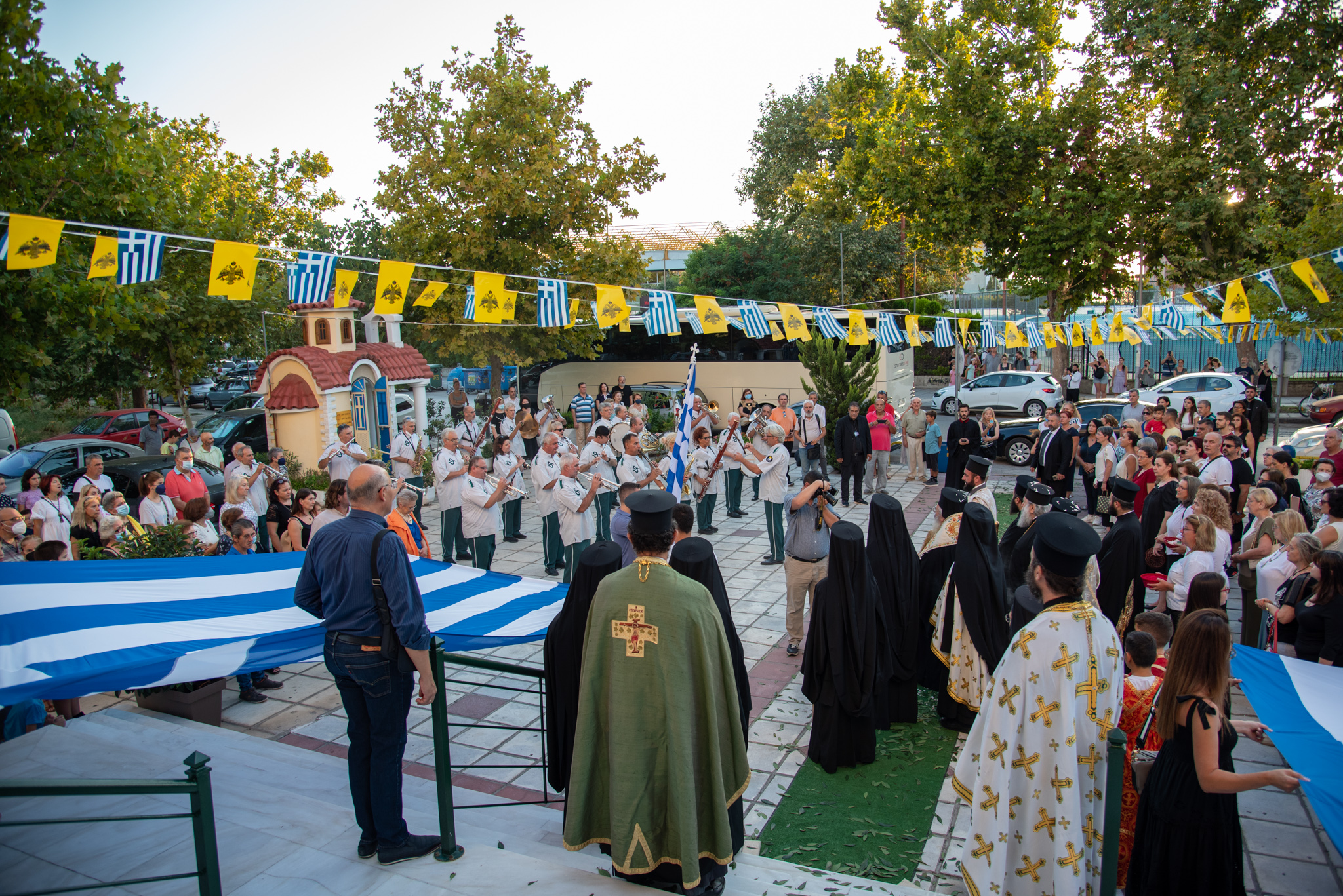 Δηλαδή, ὅλα στόν κόσμο μας, πνευματικά καί ὑλικά, ἔχουν ἀνάγκη ἀπό τόν Τίμιο Σταυρό, ἀπό τό Σφράγισμα τοῦ Σταυροῦ, καί ὁ ἄνθρωπος, καί ἡ φύση, καί ἡ Παιδεία, καί ὁ Πολιτισμός, καί ἡ ζωή, καί ὅλες οἱ λεπτομέρειες τῆς καθημερινότητάς μας!» τόνισε μεταξύ των άλλων ο Προιστάμενος του Ναού Παν. Αρχιμ. Μακάριος Τσιμέρης στην προσφώνησή του και συνέχισε: «Ἔρχεται σήμερα ὁ πρόσφυγας ἀπό τά ματωμένα χώματα της Μικρασίας Σταυρός, τόν ὁποῖο στό προσωπικό του κειμηλιοφυλάκειο, ὡς μαργαρίτη πολύτιμο, διεφύλαξε ὁ Σεβασμιώτατος κ. Πλάτων, καθώς αὔριο τιμοῦμε τή μνήμη τῶν πεσόντων στή γῆ τῆς Ἰωνίας καί θρηνοῦμε τόν ξερριζωμό, τή σφαγή καί τήν προσφυγιά τῶν Μικρασιατῶν πατέρων μας, 100 χρόνια μετά, γιά νά μᾶς θυμίσει τό χρέος μας πρός τήν Ἁγία μας Ἐκκλησία καί τήν φιλτάτη μας πατρίδα, νά διατηρήσουμε ἄσβεστη τή φλόγα τῆς πίστεως καί των πατρώων παραδόσεων, γιά νά ζεστάνουμε τήν ψυχή τῶν συνανθρώπων μας, καί ἰδιαίτερα τῶν νέων μας, πού ἔχει παγώσει ἀπό τό δριμύ ψῦχος τῆς ἀπιστίας, τῆς ἀμφιβολιας, τῆς ὑποκρισίας, τοῦ ἐγωισμοῦ καί τῆς ἁμαρτίας.