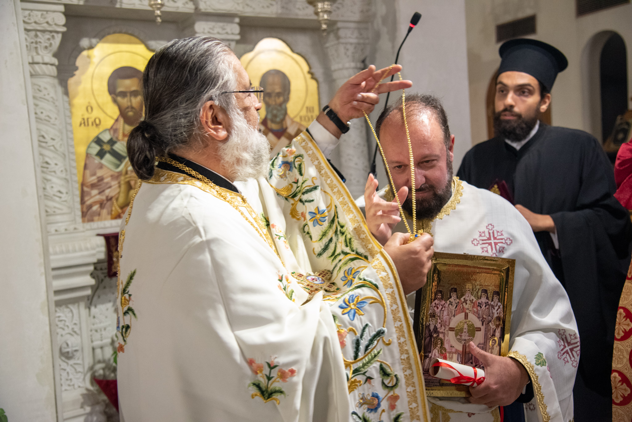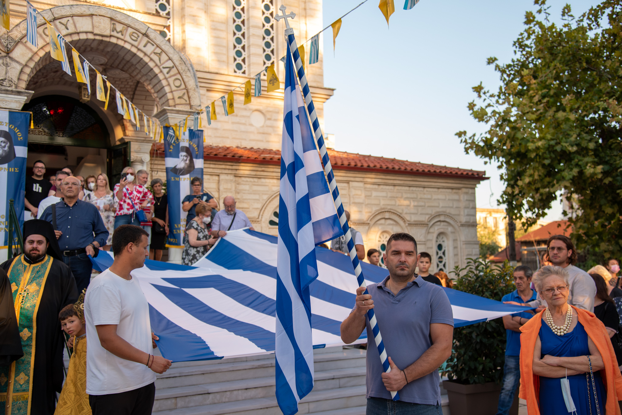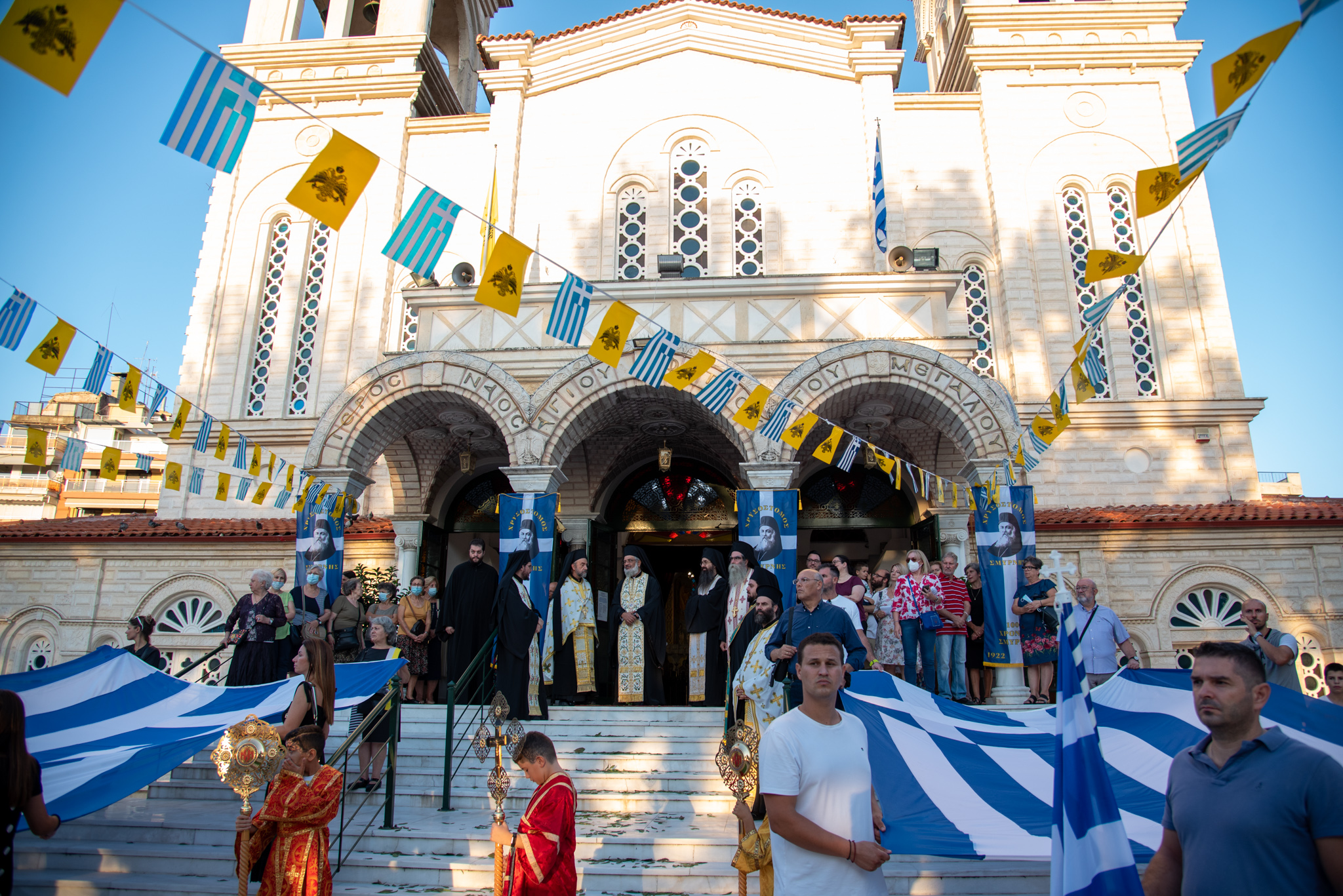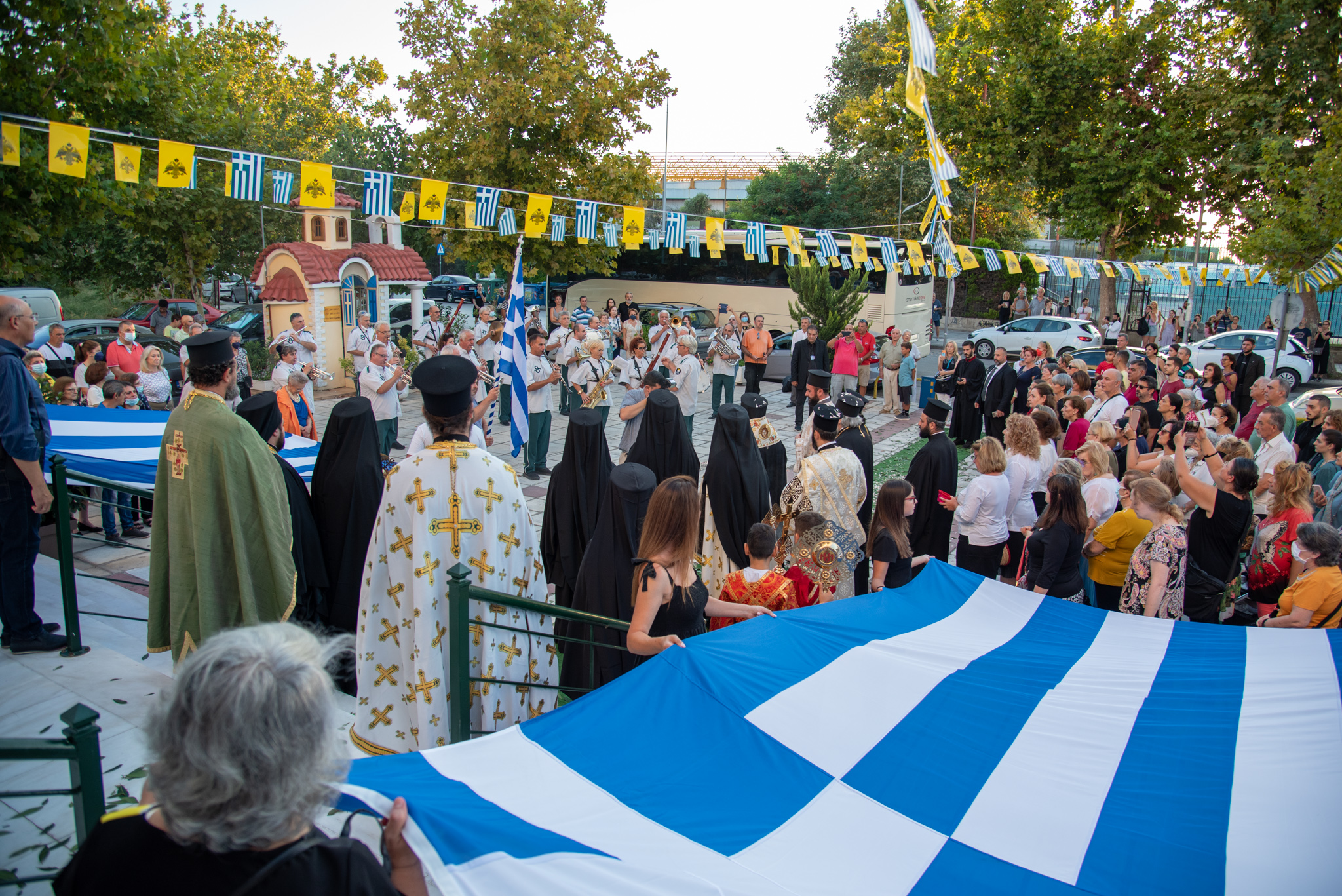 Δηλαδή, ὅλα στόν κόσμο μας, πνευματικά καί ὑλικά, ἔχουν ἀνάγκη ἀπό τόν Τίμιο Σταυρό, ἀπό τό Σφράγισμα τοῦ Σταυροῦ, καί ὁ ἄνθρωπος, καί ἡ φύση, καί ἡ Παιδεία, καί ὁ Πολιτισμός, καί ἡ ζωή, καί ὅλες οἱ λεπτομέρειες τῆς καθημερινότητάς μας!» τόνισε μεταξύ των άλλων ο Προιστάμενος του Ναού Παν. Αρχιμ. Μακάριος Τσιμέρης στην προσφώνησή του και συνέχισε: «Ἔρχεται σήμερα ὁ πρόσφυγας ἀπό τά ματωμένα χώματα της Μικρασίας Σταυρός, τόν ὁποῖο στό προσωπικό του κειμηλιοφυλάκειο, ὡς μαργαρίτη πολύτιμο, διεφύλαξε ὁ Σεβασμιώτατος κ. Πλάτων, καθώς αὔριο τιμοῦμε τή μνήμη τῶν πεσόντων στή γῆ τῆς Ἰωνίας καί θρηνοῦμε τόν ξερριζωμό, τή σφαγή καί τήν προσφυγιά τῶν Μικρασιατῶν πατέρων μας, 100 χρόνια μετά, γιά νά μᾶς θυμίσει τό χρέος μας πρός τήν Ἁγία μας Ἐκκλησία καί τήν φιλτάτη μας πατρίδα, νά διατηρήσουμε ἄσβεστη τή φλόγα τῆς πίστεως καί των πατρώων παραδόσεων, γιά νά ζεστάνουμε τήν ψυχή τῶν συνανθρώπων μας, καί ἰδιαίτερα τῶν νέων μας, πού ἔχει παγώσει ἀπό τό δριμύ ψῦχος τῆς ἀπιστίας, τῆς ἀμφιβολιας, τῆς ὑποκρισίας, τοῦ ἐγωισμοῦ καί τῆς ἁμαρτίας.