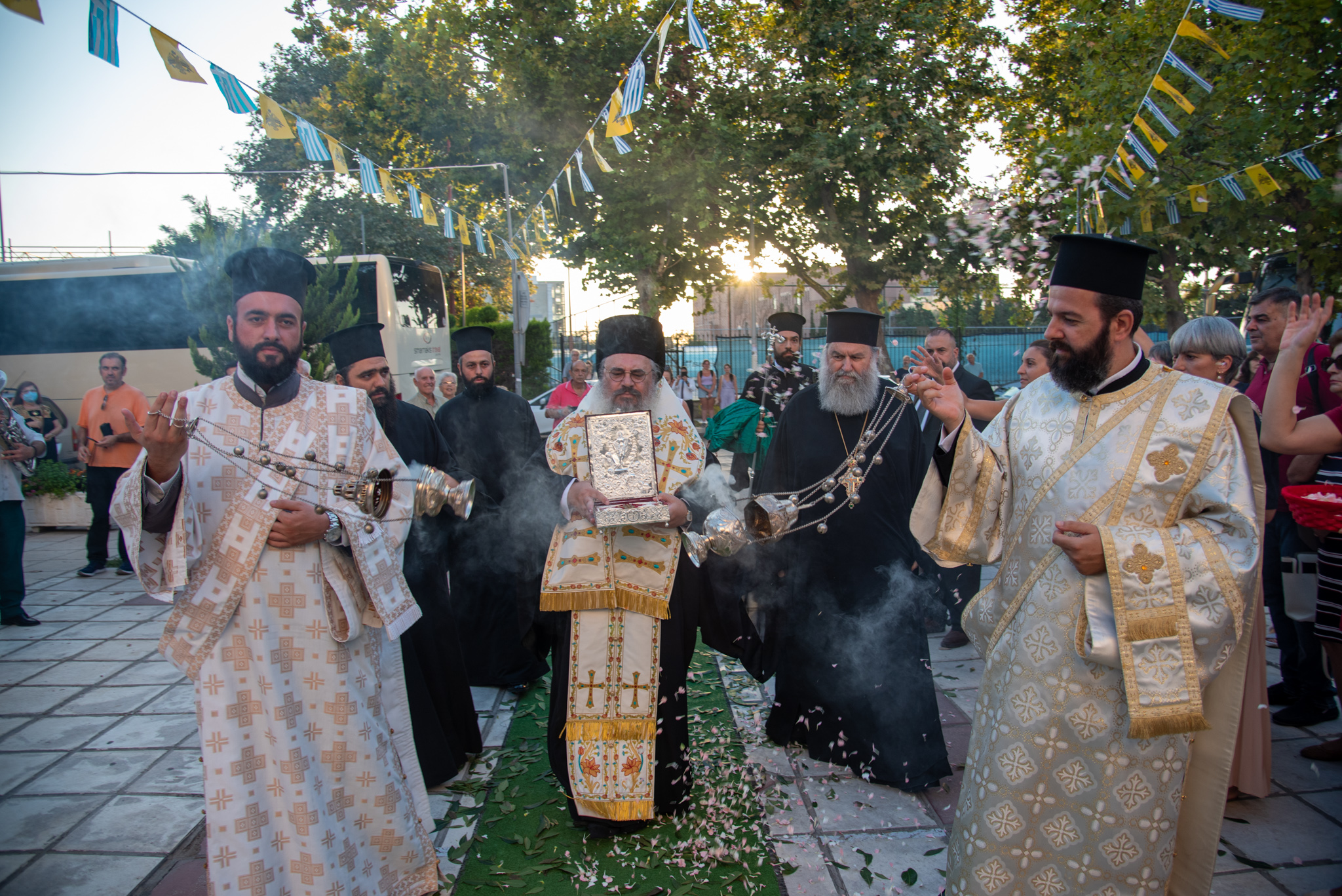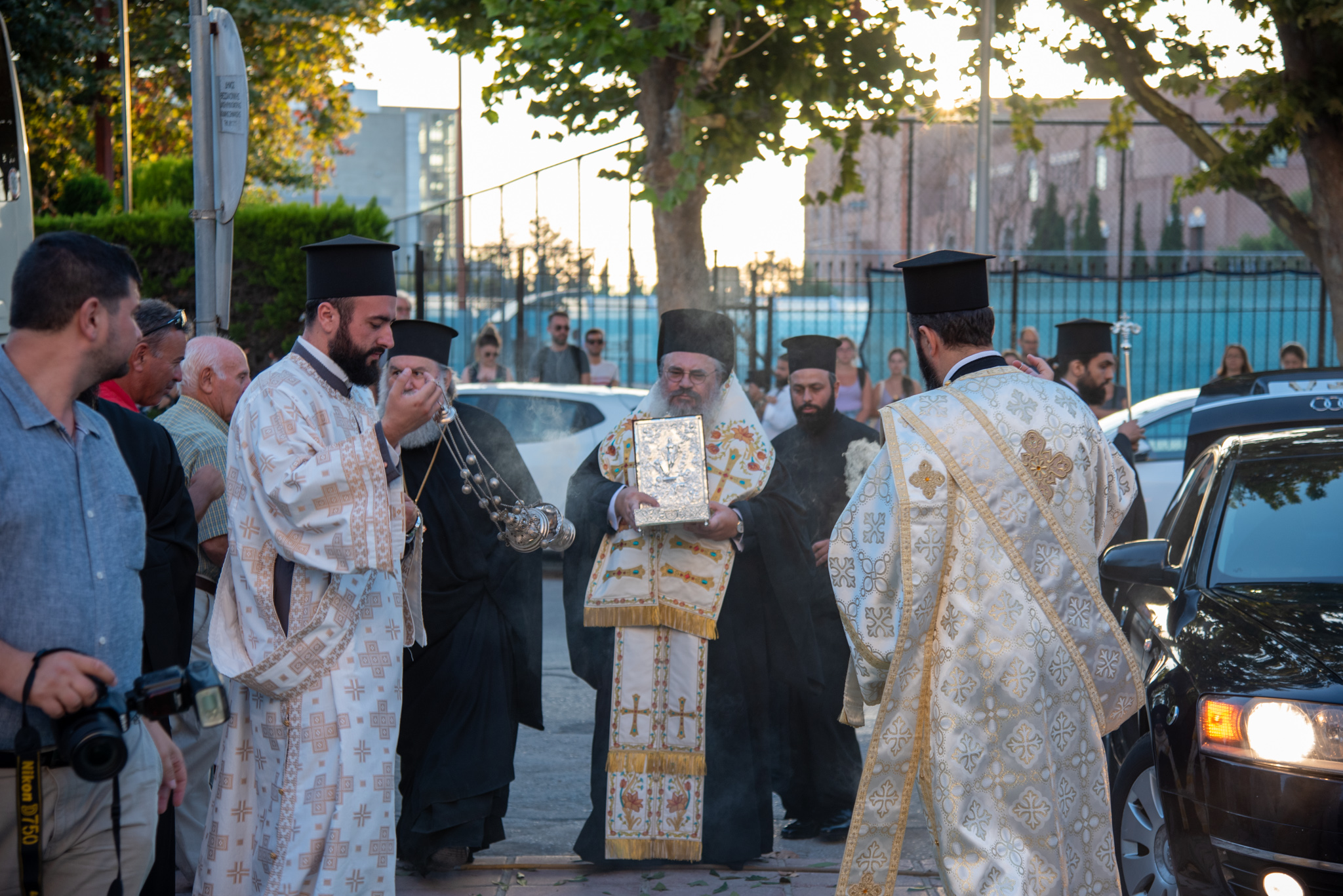 Η λαμπρή υποδοχή έλαβε χώρα στα προπύλαια του περικαλλούς Ιερού Ναού Αγίου Φωτίου του Μεγάλου, στη νέα παραλία Θεσσαλονίκης, το απόγευμα του Σαββάτου 10 Σεπτεμβρίου 2022, με κάθε τιμή και μεγαλοπρέπεια, με την Φιλαρμονική του Δήμου Θεσσαλονίκης να αποδίδει τις πρέπουσες τιμές και τις ελληνικές σημαίες να κυματίζουν περήφανα!