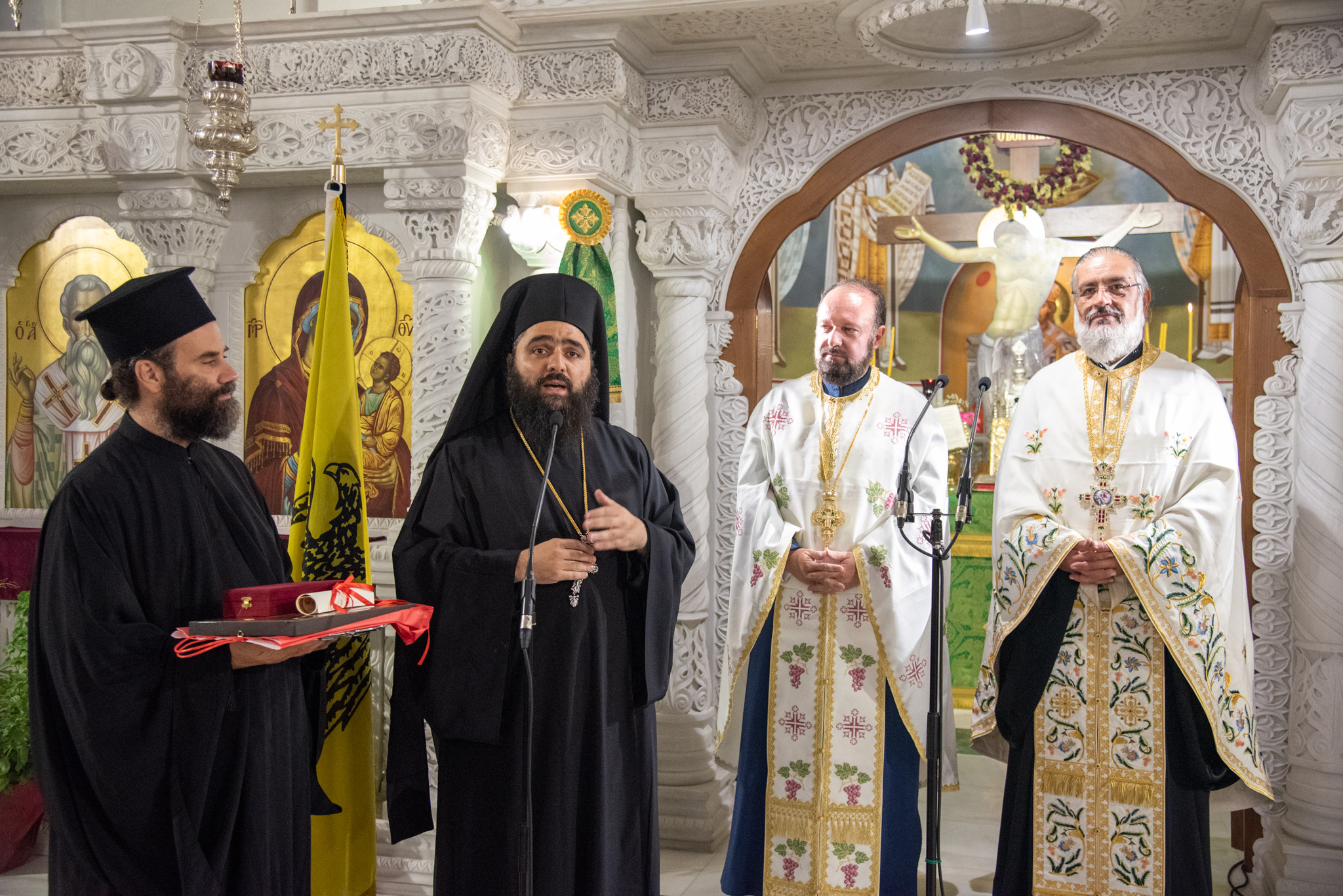 Ευχαρίστησε τον π. Μακάριο για την κατά πάντα άψογη διοργάνωση της υποδοχής και τον λαό του Θεού που προσήλθε για να λάβει χάρη από τη Χάρη του Τιμίου Ξύλου του Ζωοποιού Σταυρού.